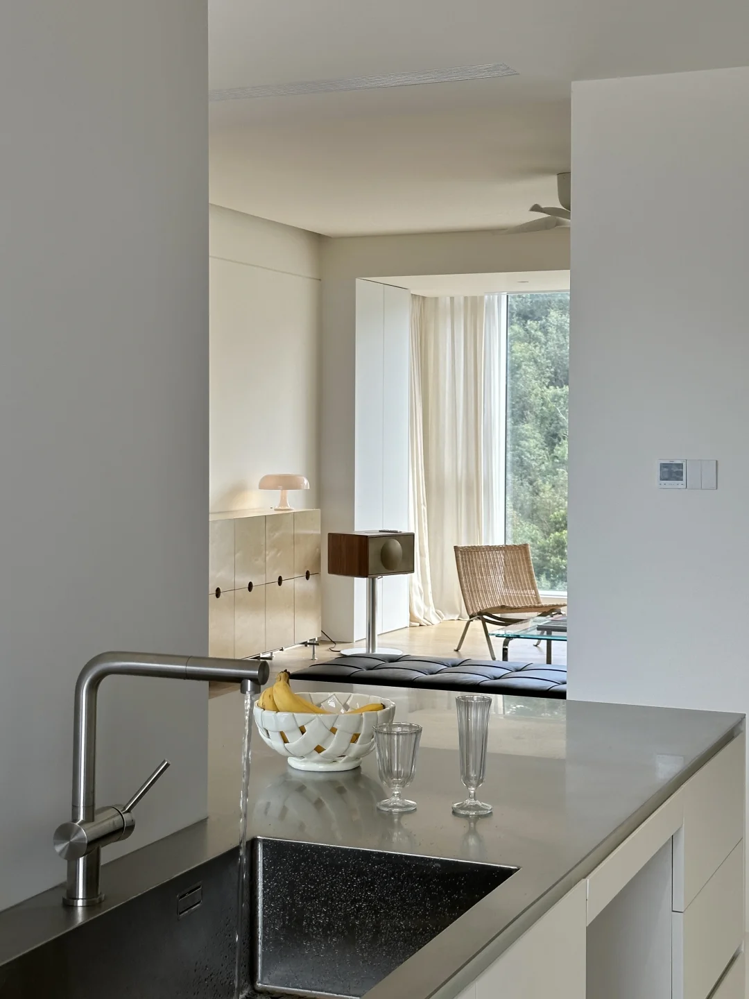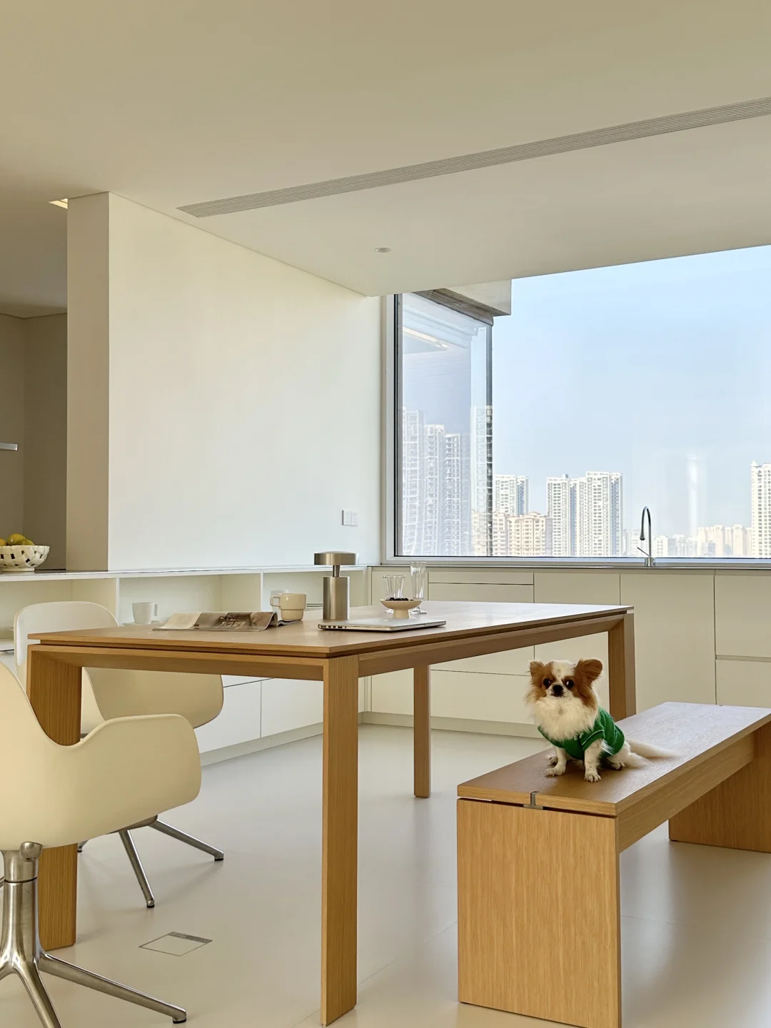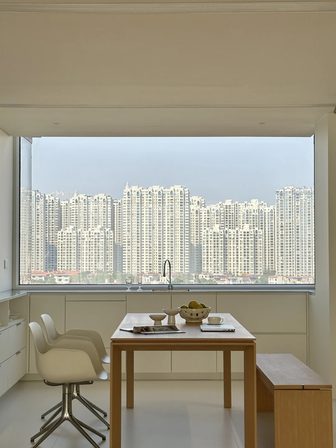 全景大玻璃把窗外的开阔视野和城市风景框进厨房,做饭时都觉得格外舒服