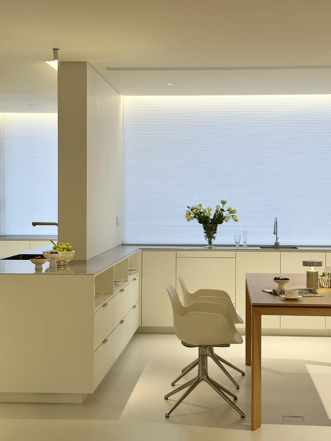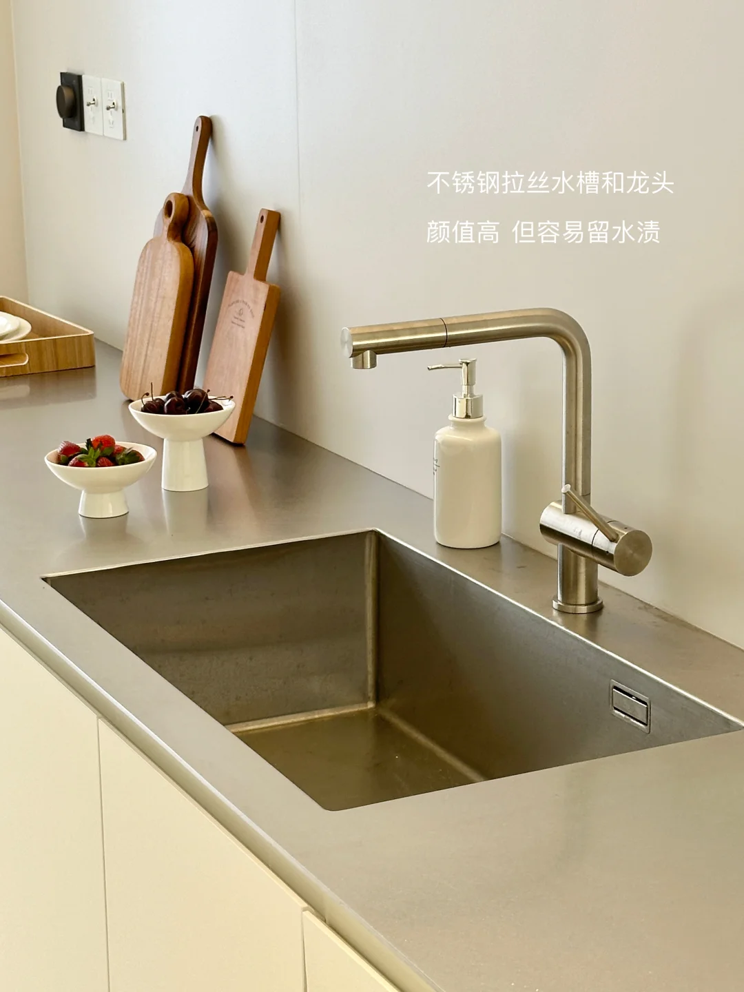 放弃压抑吊柜,奶白色橱柜+不锈钢台面+同色不锈钢厨电,复刻韩系ins博主同款,清冷又不失温度