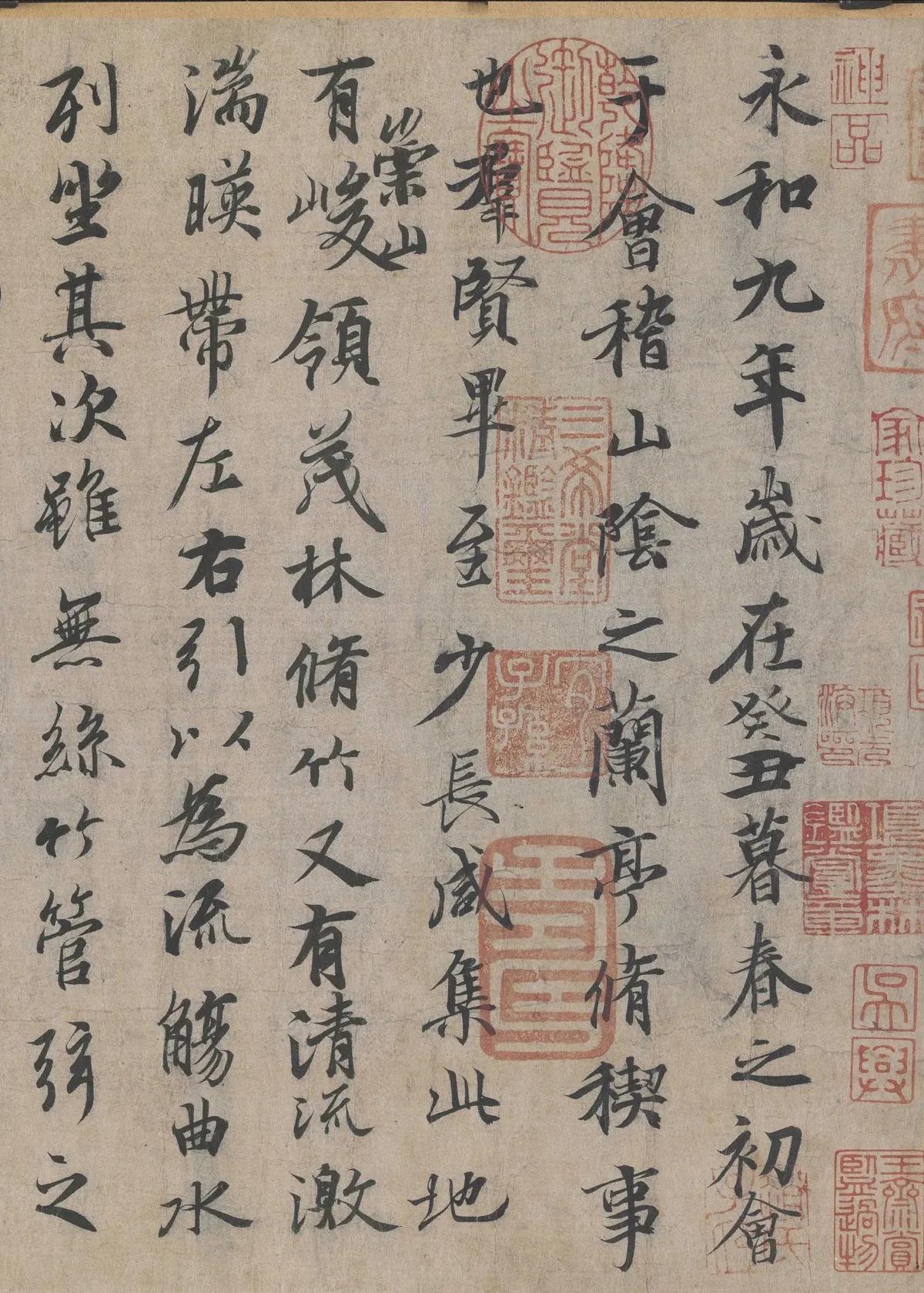 《兰亭序》 ——晋·王羲之 永和九年,岁在癸丑,暮春之初,会于会稽山阴之兰亭,