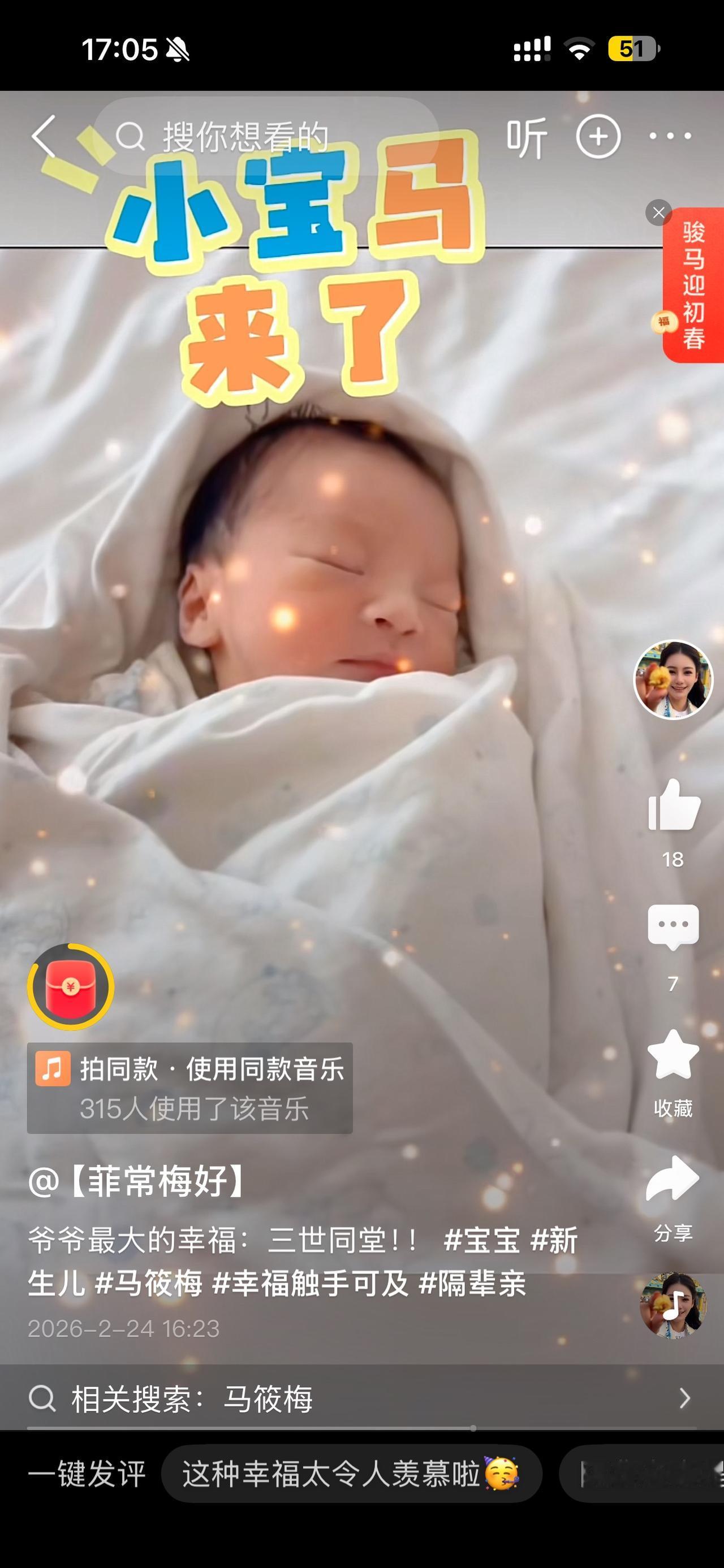 什么是幸福?看看这家人,掩不住的笑意写在脸上,那个幸福的样子说明了一切。张兰直播时乐的合不拢嘴,再看看汪小菲的父亲抱着孙子难掩幸福的表情。也是:那个老人不希望自己家三世同堂,添人加口? 马筱梅的辛苦付出一切都值得,以前所受到的委屈,黑粉的不理解又算得了什么?一切都有了好的结果。公婆的认可、老公的宠爱特别是玥儿和箖箖每晚不和她说晚安都不睡觉就说明了一切,孩子们是最真实的。看着幸福的一家人真的为他们开心,看来:人要善良,好人会有好报的!筱梅生子乐坏一家人