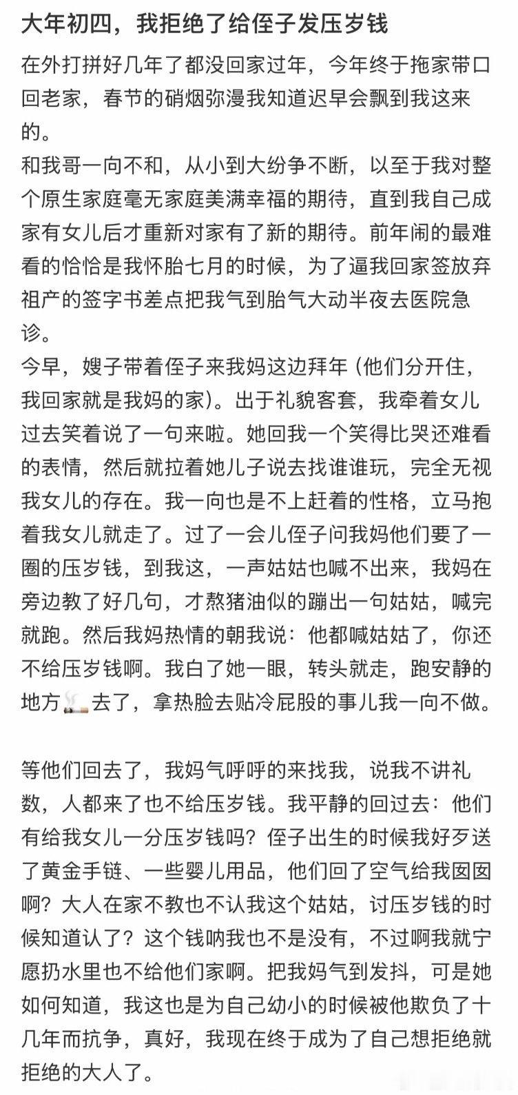 今天老婆和我亲弟吵架了,原因是我弟弟给我儿子女儿的压岁钱只有两百块钱,给我堂弟的