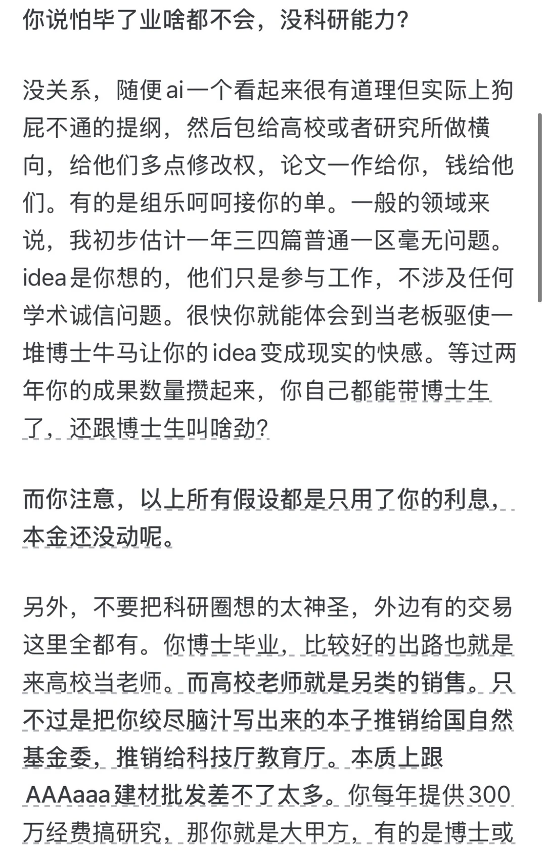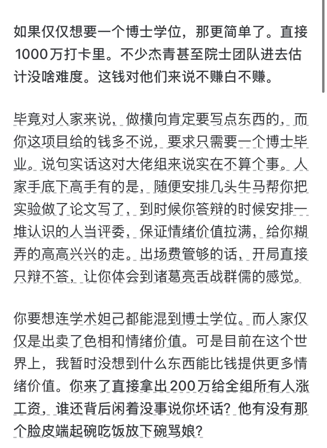 你要有这个能量,别说区区博士学位,在一般学校上个副高比打lol上青铜还简单,上正高也就跟上个白银差不多。别说一年300万,事实上能保证一年稳定拉100万的正高也没几个。一般的文科商科管理学科压根没有拉到这个数量级的横向的可能性。只有几个大热理工科的老板才有机会。