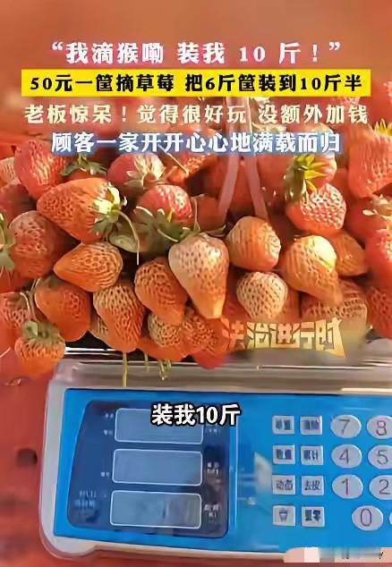 安徽临泉,一草莓采摘园,老板承诺50元一篮子,装不下为止!差不多能装6斤左右! 老板万万没想到,一女子竟然在篮子里装了10斤草莓!老板看到后都被惊呆了,连连称赞真是高手! 女子和老公带着3个孩子来到草莓园采摘草莓,3个孩子加上2个大人很快篮子就装满了! 女子把草莓又捡出来重新码好,篮子又腾出很大一部分空间! 女子突然想到了一个好办法,她专挑那些根茎长一点的,两三个一组留着不剪断,然后像搭积木一样顺着篮子边沿一层一层往上码! 终于码好装满!女子提着篮子去给老板付钱,老板当时都惊呆了!他说第一次看到有人这样装草莓,于是拿起来放到秤上称了一下足足10斤重!比其他人多装出了4斤! 老板直夸女子厉害,女子也很开心!扫码付款提着草莓带着孩子兴高采烈的离开了采摘园!不得不说真是高手在民间!
