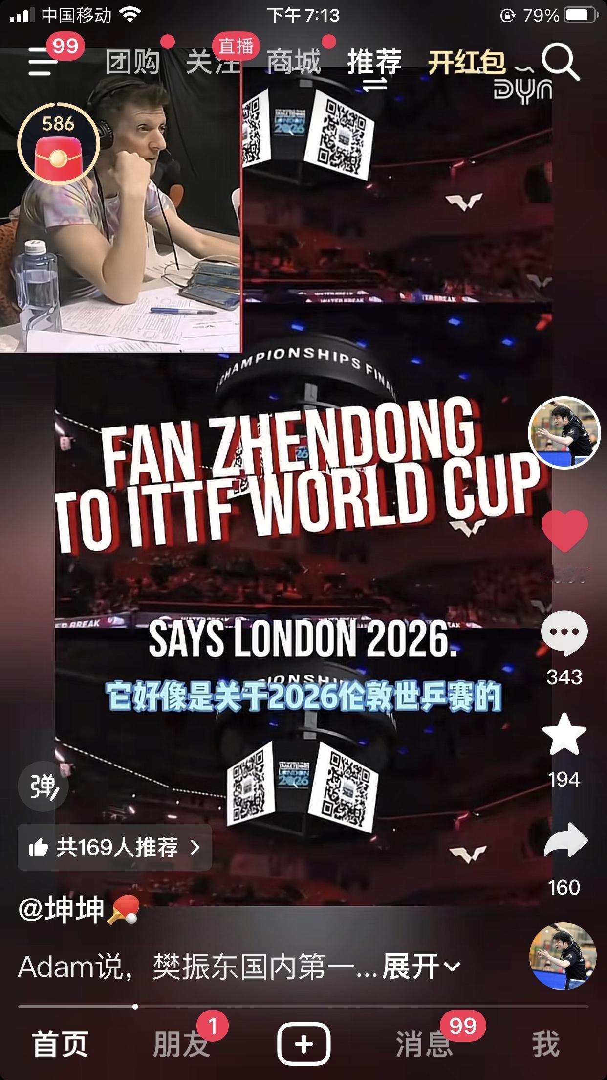 昨天晚上新加坡大满贯赛场上,著名乒乓国际解说Adam提到了樊振东:他一直是个很传奇的运动员,据了解他会代表中国参加百年团体世乒赛,在乒乓球界世界积分排名第一王X钦,而实力第一樊振东。看过中国全运会的人都知道,一周之内樊振东两次击败王楚钦. 听着听着居然眼眶含泪,鼻子很酸,我是开心还是心痛呀?看过这段视频竟莫名的心酸,自己家的宝贝那么长时间无人在这样的赛场上提及,竟被一外国解说这样讲给了世人听!亚当对东东的爱是无处不在啊。