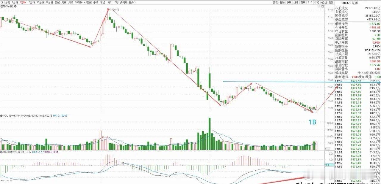 从5分钟图上看,收盘已经出现强有力的背驰买点,明天就看这笔买点拉升的力度,只要快速突破今日高点,那再回调下来就有机会构建二买,就能结束这笔短线回调,开始30分钟级别的上涨。券商股票券商