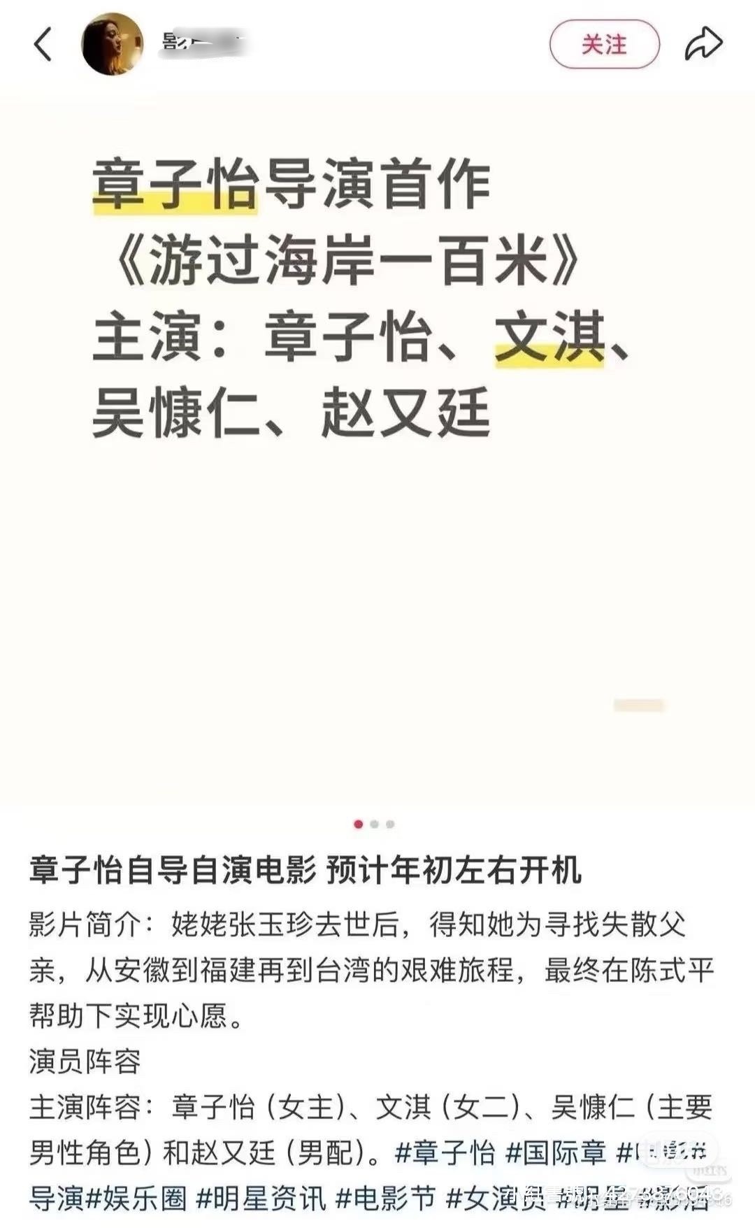 看起来蛮真的,章子怡导演作品《游过海岸一百米》,有人爆料说田栩宁今天试镜了。章