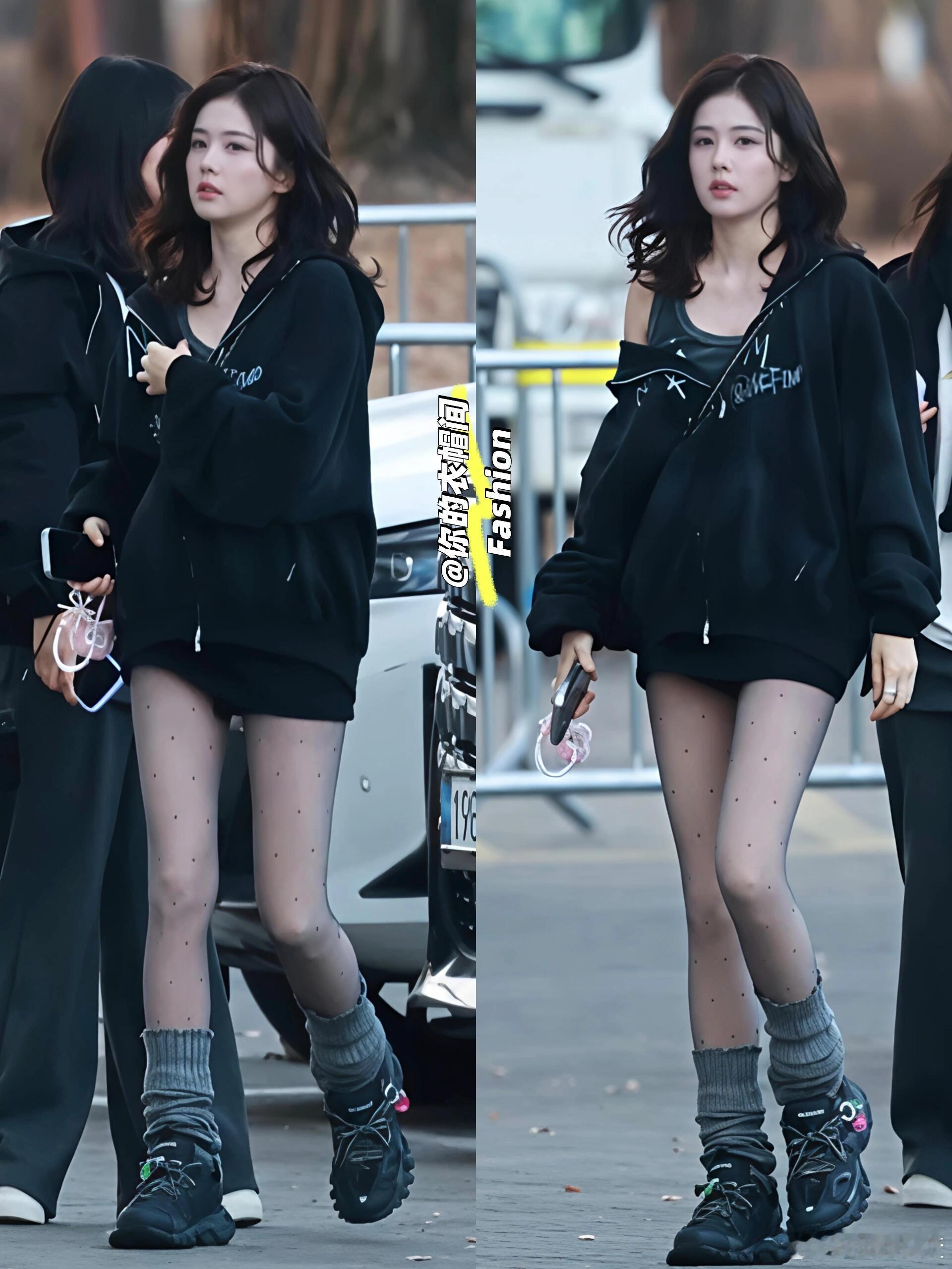 白鹿 白鹿 | 波点黑丝+堆堆袜🔥韩系穿搭好时髦被白鹿韩国路透美到了💫