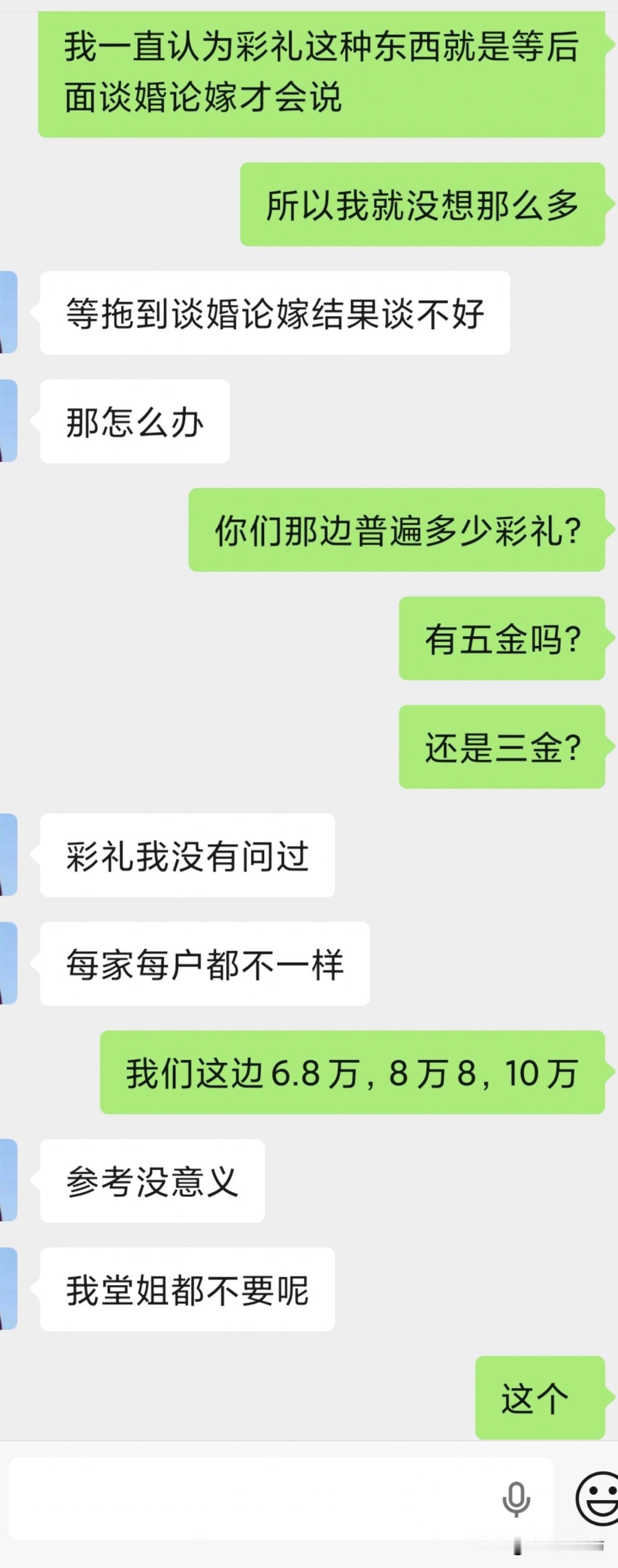 情况是这样:跟男朋友谈了一年这样,他28,我25,他是家里的独生子,他爸爸在家务农,打理果园;他妈妈在家附近的工厂上班。家里有房子但是还没装修。我跟他说过我家 我妈说过彩礼要10万,然后就觉得压力大,就有了他跟我说的这些。 我家就是有两姐妹,还有一个弟弟,自我认为我妈是想靠女儿彩礼钱扶持家里儿子那种。我妹妹比我小两岁,今年结婚了,彩礼12.8W,回了一半给我妹。 我跟男朋友说了这个情况,他就觉得我妈拿了一半的钱只回了一半,有点不妥。(算了,看图1️⃣) 如果后续结婚 我们女方是不办酒席的,男方应该会办。 三金五金这些目前还没聊到。