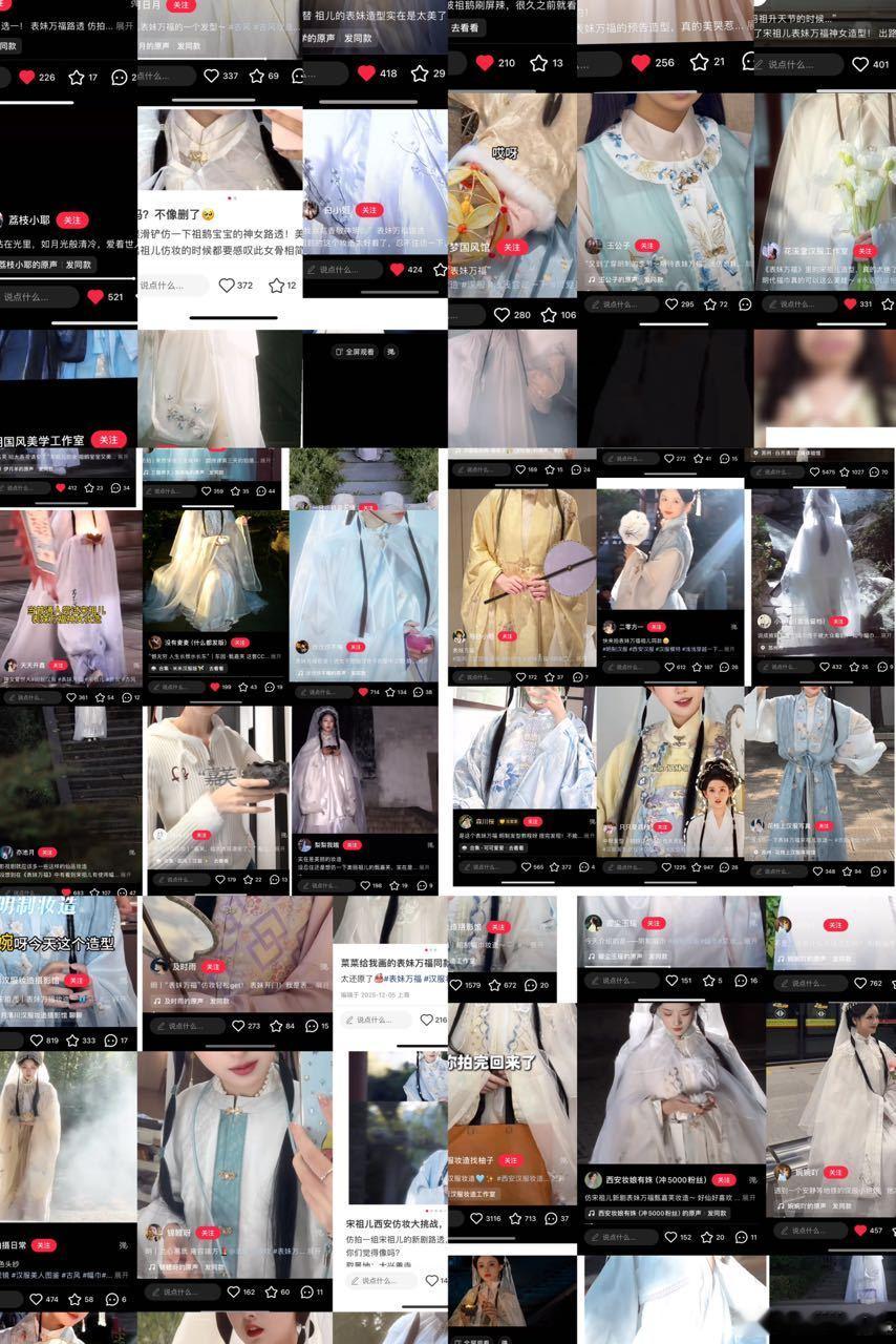 宋祖儿表妹万福各种造型的仿妆在xhs讨论度还蛮高的诶,有不少几百上千收藏评论的帖子,下沉平台热度已起来,非常期待表妹万福的播出!宋祖儿