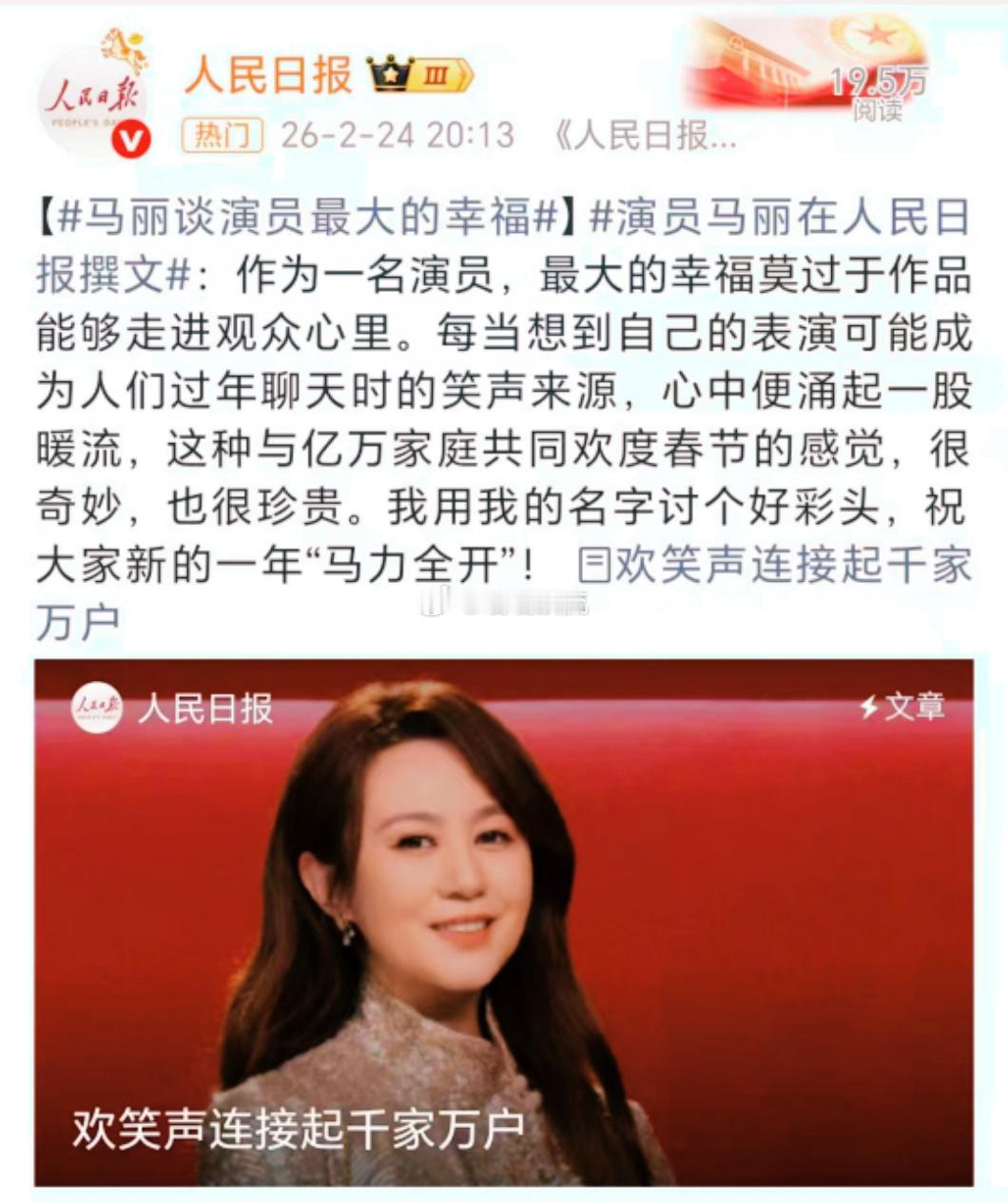 马丽谈演员最大的幸福 真诚永远最动人 “作品能够走进观众心里”,是马丽对表演最纯粹的答案。用心演绎每一个角色,用欢乐点亮新春,《熊猫计划之部落奇遇记》暖心上映。