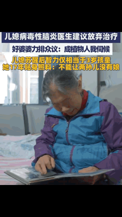 “好婆婆!”医生摇头劝放弃,她却把儿媳从“鬼门关”拉回家养了17年:只要有一口气,这就是个完整的家! 河南获嘉的大西关村,有这么一位老人,如果你提起她的本名张宝珠,可能路人都得愣一下神。但你要是问“银玲妈”住哪,那可是无人不知,家喻户晓。 2008年深冬,儿媳吕银玲突发病毒性脑炎,送到医院时已经失去自主呼吸,各项生命体征都极不稳定。医生反复跟家属说明病情,明确告知救治希望渺茫,即便勉强保住性命,也大概率长期卧床、智力大幅退化,后续的照料成本与精力消耗,足以压垮普通家庭。身边亲友都劝张宝珠趁早放手,别让全家都陷进看不到头的困境里。 张宝珠站在病床前,看着毫无意识的儿媳,再看看家里刚满十个月的小孙女、不到十岁的大孙女,眼泪在眼眶里打转,心里却拿定了主意。她不能让两个孩子没了亲妈,只要人还在,这个家就不算散。她当场拒绝了放弃治疗的建议,东拼西凑凑齐费用,执意把儿媳从医院接回家里,开启了长达17年的贴身照料。 儿媳刚回家时完全没有自理能力,连进食都要依靠鼻饲。张宝珠每天凌晨就起床,精准调配流食、按时推送药物、仔细擦拭身体、定时翻身按摩,每一个步骤都不敢有半点马虎。她担心儿媳长期卧床生出褥疮,坚持两小时翻一次身,夜里定好闹钟,17年里从没睡过一个安稳觉。儿子要外出打工承担家庭开支,所有家务、所有照料任务,全都落在她一个人肩上。 岁月在她身上留下了清晰的痕迹,当年利落的中年妇人,慢慢变成头发花白、腰背佝偻的老人,手指因常年劳作关节变形,眼睛因长期熬夜变得浑浊。她从没有过半句抱怨,对着儿媳时永远轻声细语,耐心教对方认人、说话、抬手、迈步,把儿媳当成孩童一样细心引导,日复一日重复着枯燥又辛苦的照料流程。 全村人都看在眼里、记在心里,大家发自内心敬重这位老人,都习惯喊她“银玲妈”,这个带着温度的称呼,在大西关村人人皆知,反倒渐渐淡忘了她的本名张宝珠。邻里们时常主动上门搭把手,送些新鲜蔬菜和生活用品,用最朴实的方式,帮衬这个撑着不易的家庭。 在张宝珠不间断的悉心照料下,吕银玲的身体状态一点点好转。从最初毫无反应的卧床状态,慢慢能认出家人、回应呼唤,后来还能开口唱歌、简单行走,甚至能拿起画笔涂画。这样的恢复效果,超出了当初所有医生的预判,这份平凡的坚守,硬生生创造了让人动容的生命奇迹。 张宝珠不懂什么高深的道理,她只坚守最朴素的家庭观念,只要家人在,家就是完整的。她用行动打破了世俗对婆媳关系的刻板认知,没有血缘牵绊,却用真心与坚守,活出了胜似亲生母女的温情。17年、六千多个日夜,没有惊天动地的壮举,只有藏在日常里的不离不弃,这份担当,比任何豪言壮语都更有力量。 如今家里的日子依旧不富裕,可一家人紧紧相依,满是踏实的温暖。两个孙女渐渐长大懂事,清楚奶奶的付出与不易,主动帮着分担家务、照料母亲。张宝珠用自己的坚守,不仅拉回了儿媳的生命,更守住了一个家的完整,让最质朴的亲情与善良,在乡村的烟火气里代代传递。 各位读者你们怎么看?欢迎在评论区讨论。