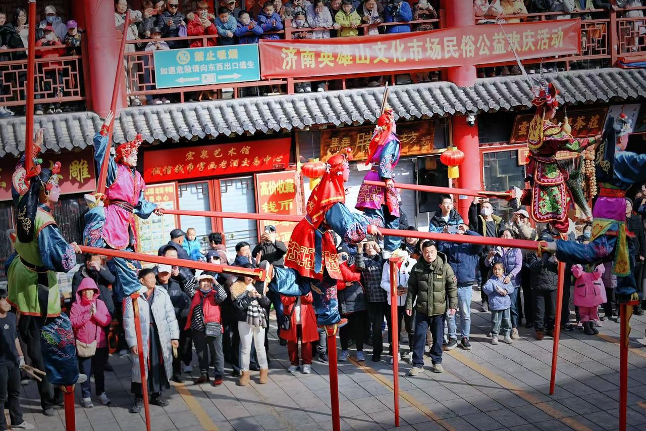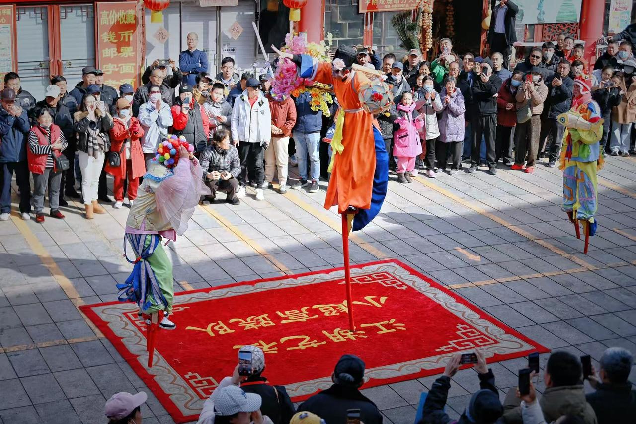 2月24日,农历正月初八,济南英雄山文化市场上锣鼓喧天,高跷表演烘托起喜气洋洋的新春氛围。详情阅读>>-app/#/content?catid=39&id=5220398(LY)