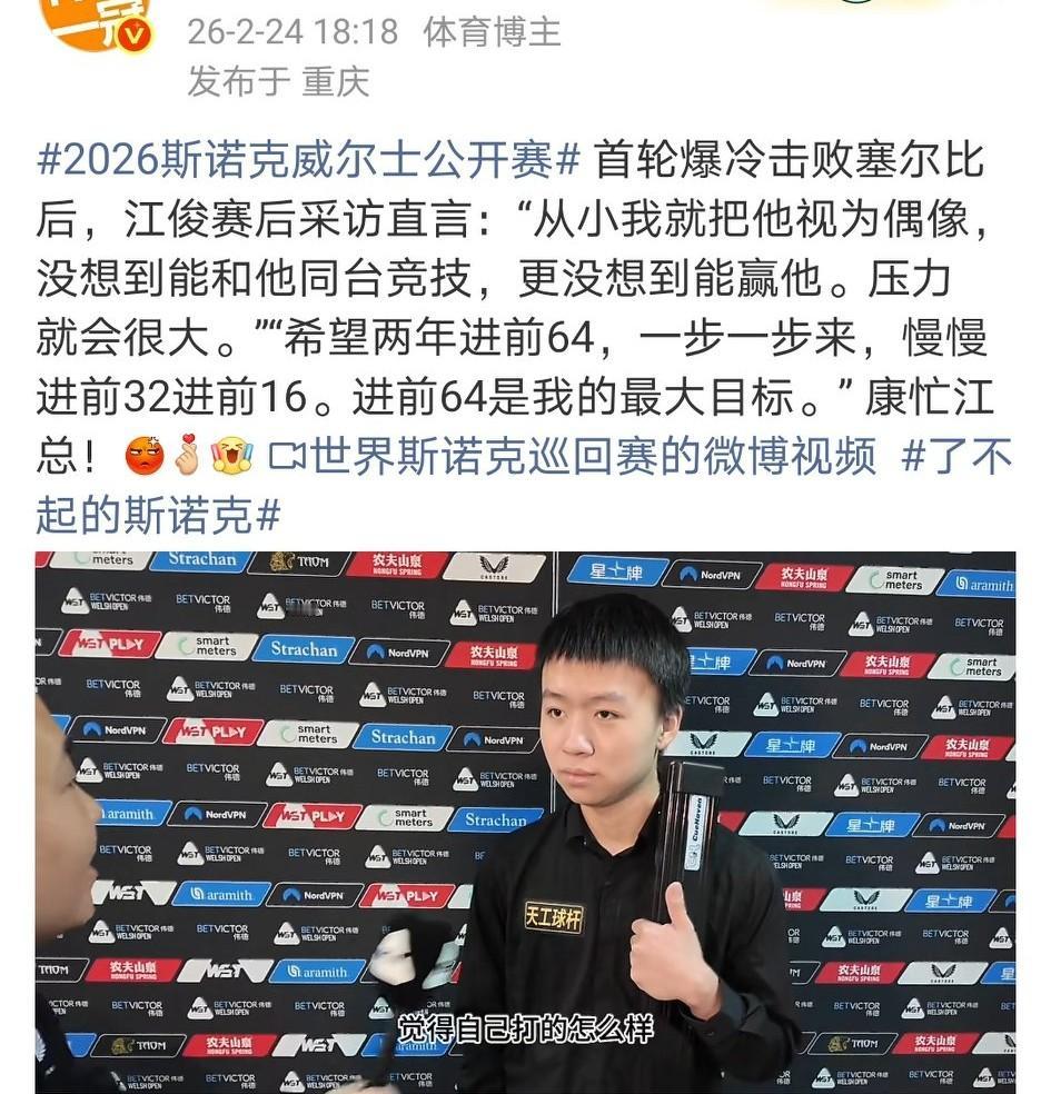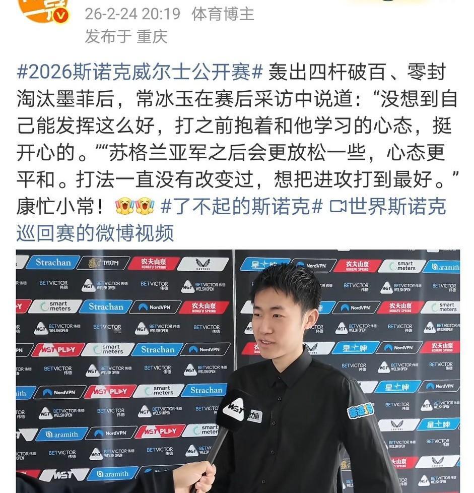 江俊常冰玉之所以能完成不可能完成的任务,一切都是受赵心童的鼓励。 本赛季中国斯诺克开始井喷,除了丁俊晖停滞不前,其他球员都在进步。网友戏言斯诺克快被中国球员打成乒乓球了。 塞尔比墨菲都是世界前十球员,能侥幸打败他们一次,不完全靠运气。而且能以这样的方式赢球,还需一颗大心脏。