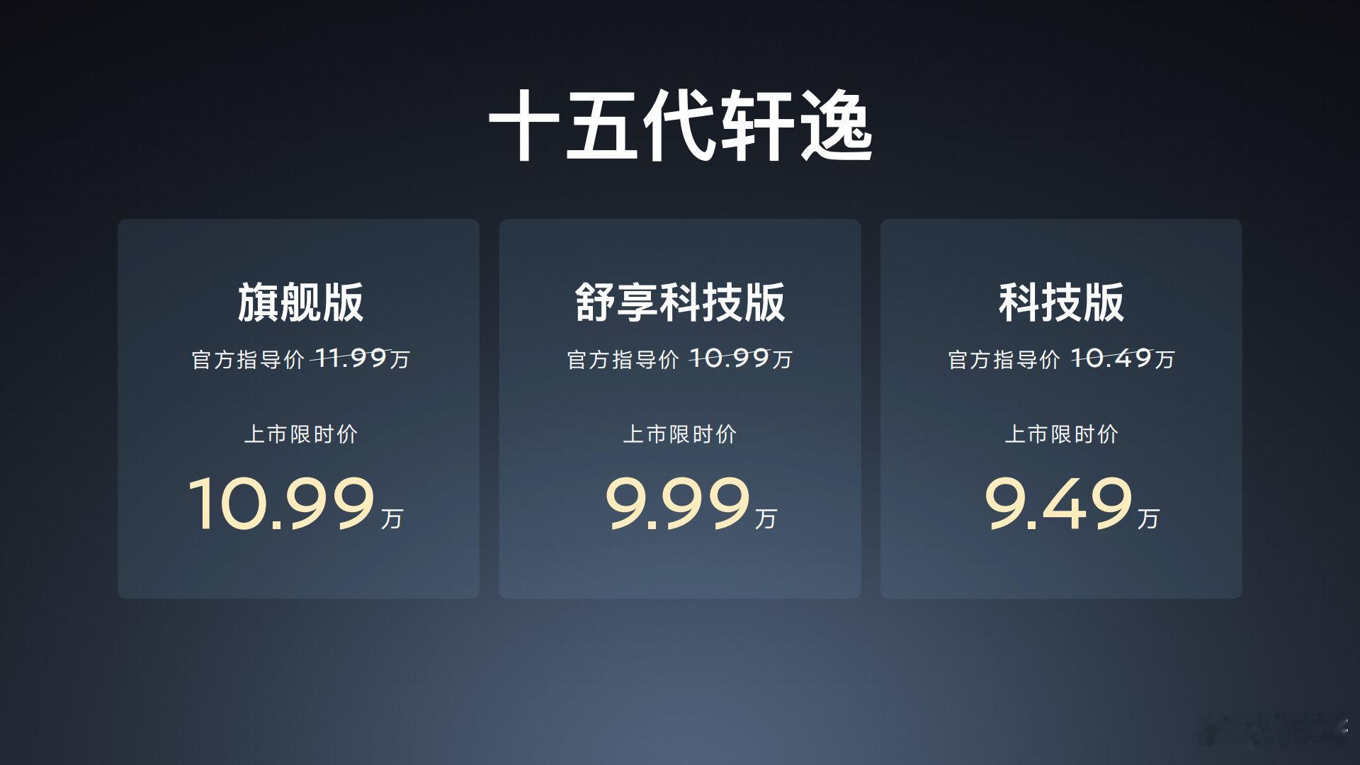 首发十五代轩逸,9.49~10.99万,经典款还在,6.5万。N6 Pro+11.19万。天籁鸿蒙座舱S380,16.19万N7上了一款510Air,10.99万。