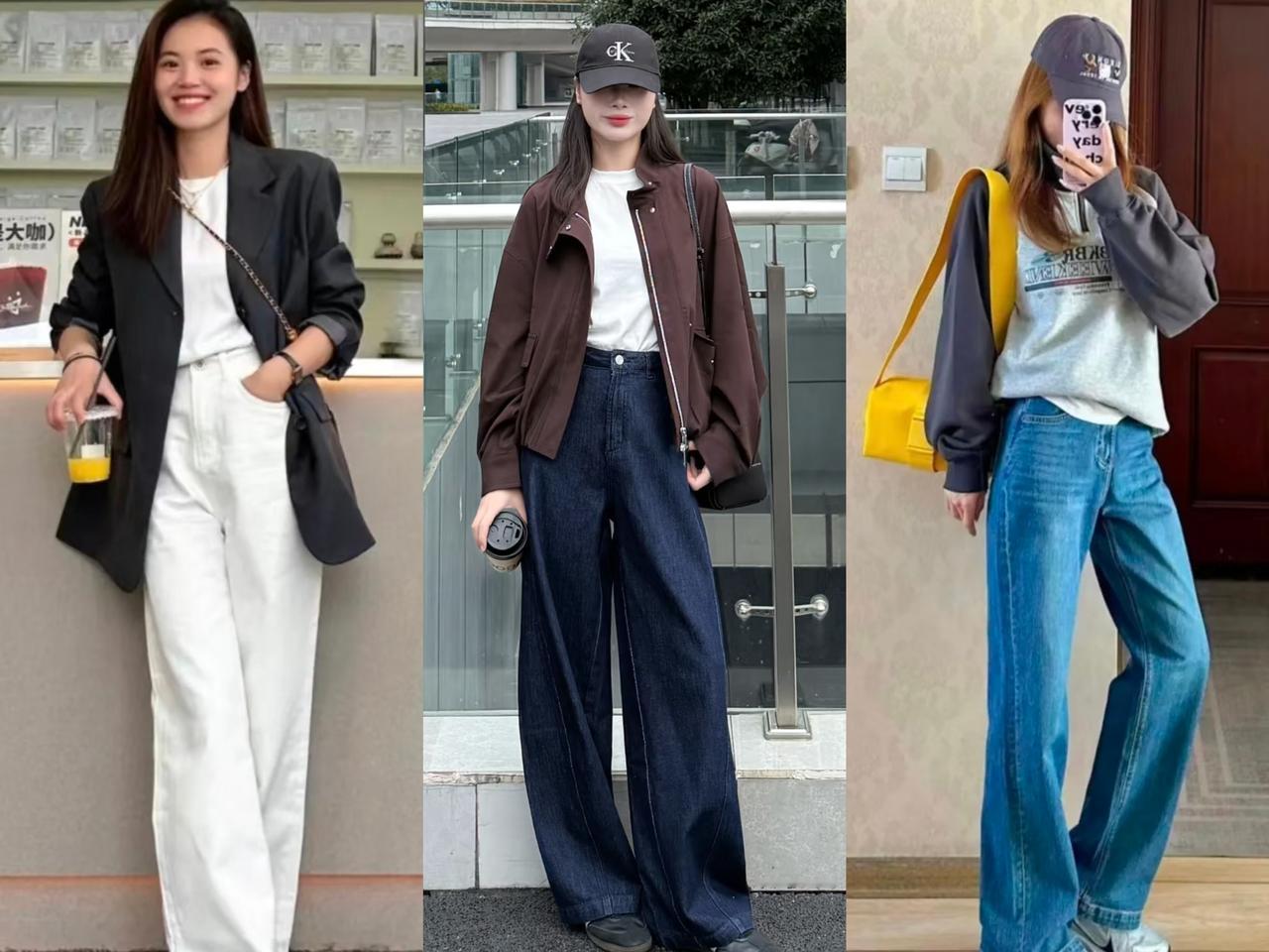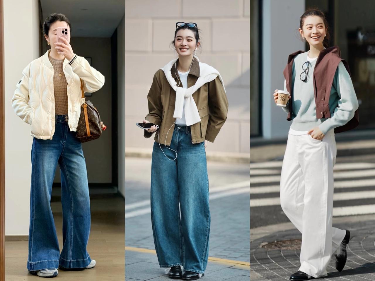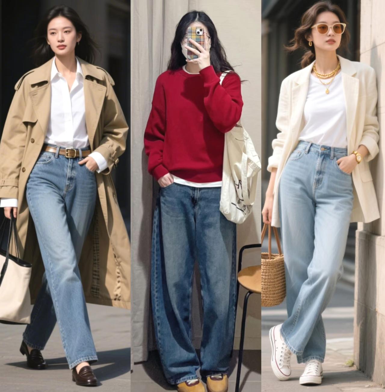 牛仔裤搭配什么样的上衣比较好看?这需要根据牛仔裤款式决定,毕竟牛仔裤有不同裤型,不同裤型的牛仔裤,选择搭配的上衣不同,打造出来的气质风格不一样。 我们可以根据个人风格和自身条件,选择适合的牛仔裤搭配。 比如阔腿牛仔裤,因为裤子款式宽松,能很好遮掩胯宽腿粗、双腿不直等缺陷,同时也给人一种大量感视觉。此时搭配的上衣,就不宜选择过于宽松的款式,否则会给人上宽下宽的臃肿感,显胖又显壮。 建议选择合体修身、长度在胯宽左右的款式,凸显出腰线比例。如春季的短款工装外套、皮夹克、牛仔外套等,将视觉焦点锁定在上半身,穿出上短下长身材比例,显瘦显高又好看,非常适合小个子女性打造显身高造型。 而牛仔直筒裤,裤腿比紧身裤宽松,比阔腿裤稍窄,穿上后不仅遮肉还显腿直,给人一种舒适又利落的视觉感。 要是选择同样利落气质的上衣搭配,如西装、风衣等,再搭配一双皮鞋或德训鞋,整体呈现出和谐统一的美感,气质干练不失轻盈,好看又自信,适合职场通勤穿搭。 倘若直筒牛仔裤搭配的上衣是毛衣或卫衣,则呈现出不同的时尚造型。搭毛衣,气质显温柔,搭卫衣,造型减龄有活力。同样一条直筒牛仔裤,搭配的上衣不同,打造出来的造型不一样。 除了阔腿裤、直筒裤以外,还有九分烟管牛仔裤、微喇牛仔裤、弯刀牛仔裤等,不同的裤型搭配的上衣不同,气质也不同。