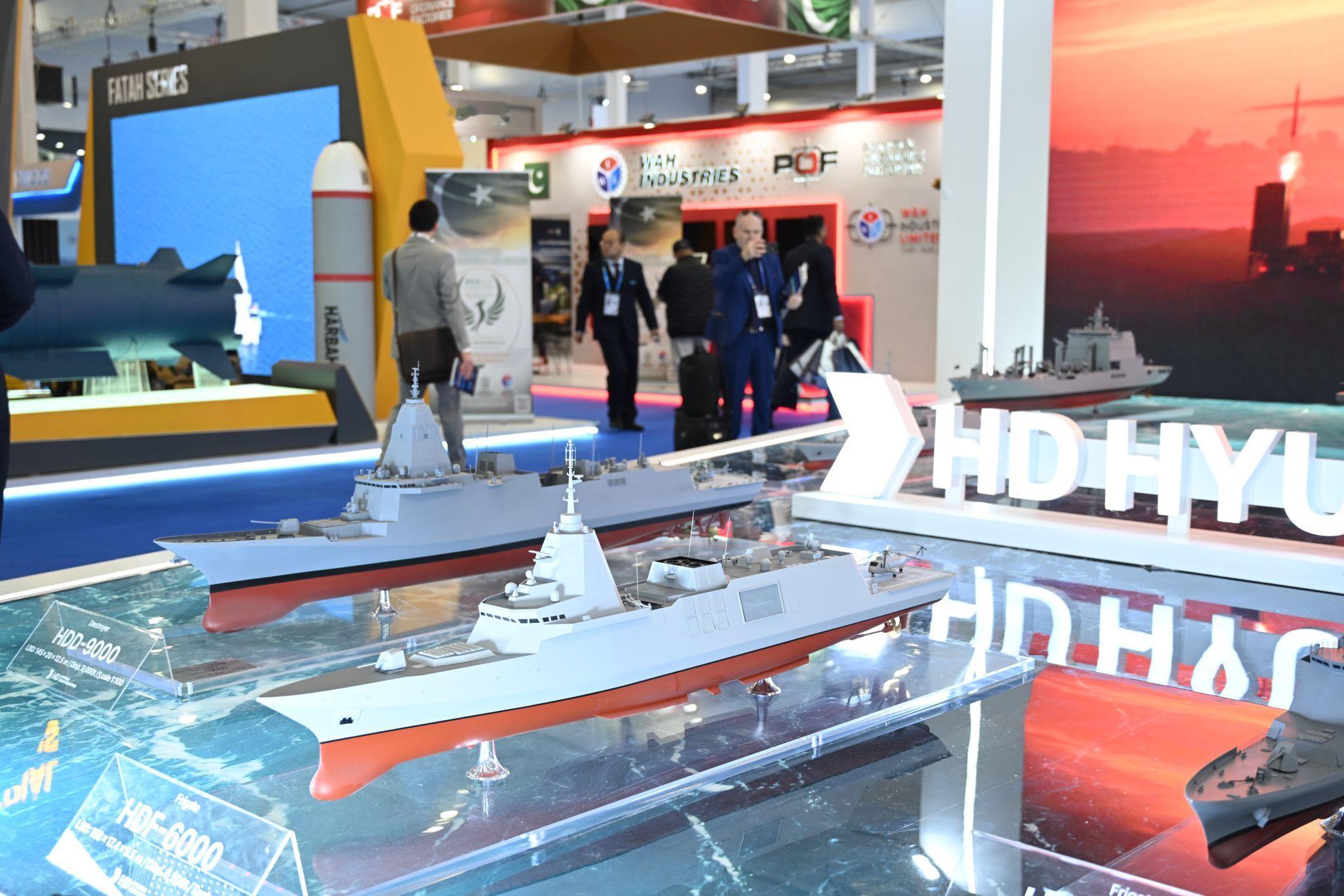 中外舰闻 烽火问鼎计划 沙特WDS 2026防务展上展出的韩国🇰🇷HD HHI的HDF-6000导弹护卫舰(图1,设计排水量6,500吨,和FREMM大小差不多)和HDD-9000导弹驱逐舰(图3,设计排水量超过9,000吨,比“阿利•伯克”更大,满载排水量超过万吨)的模型(图3)。