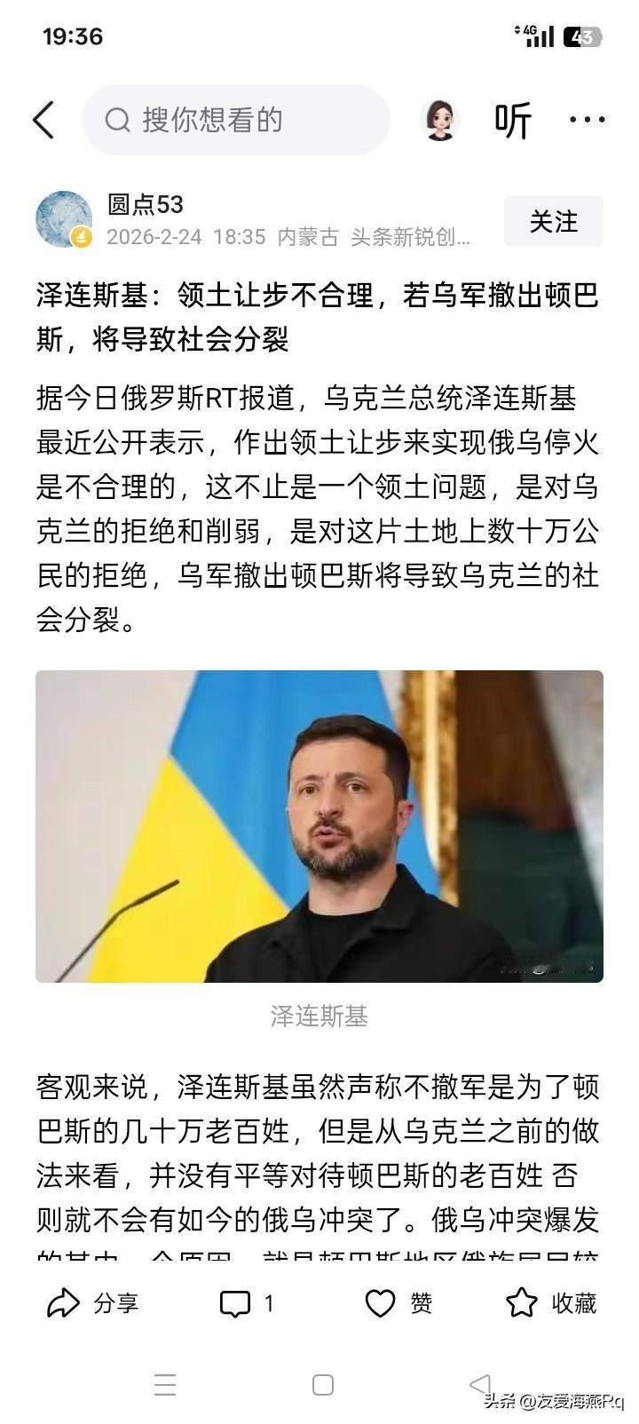 别想了? 俄罗斯、乌克兰和美国的谈判中,一直要求乌克兰割让部分领土、尤其是顿巴斯地区给俄罗斯,才能结束而和平。美国总统特朗普好像也支持俄罗斯的这一立场,三番五次采取各种手段,试图让乌克兰同意俄罗斯的要求。 然而,乌克兰总统泽连斯基已经明确表示,他已经下令给乌克兰的谈判代表团,不让这些年乌克兰的努力化为乌有;不能贬低所有的抗争与勇气,绝对不能背叛人民。另外,泽连斯基还强调,割让领土会让乌克兰社会产生分裂。但他好像万万不会让乌克兰社会产生分裂。 因此,关于俄罗斯和美国想让乌克兰割让部分领土的要求,估计可以别再想了,想也是白想,并且似乎毫无任何价值。