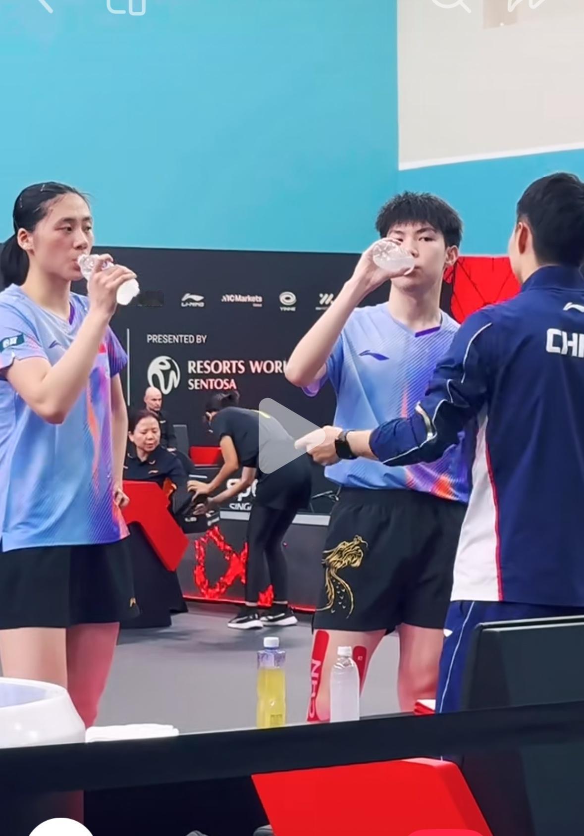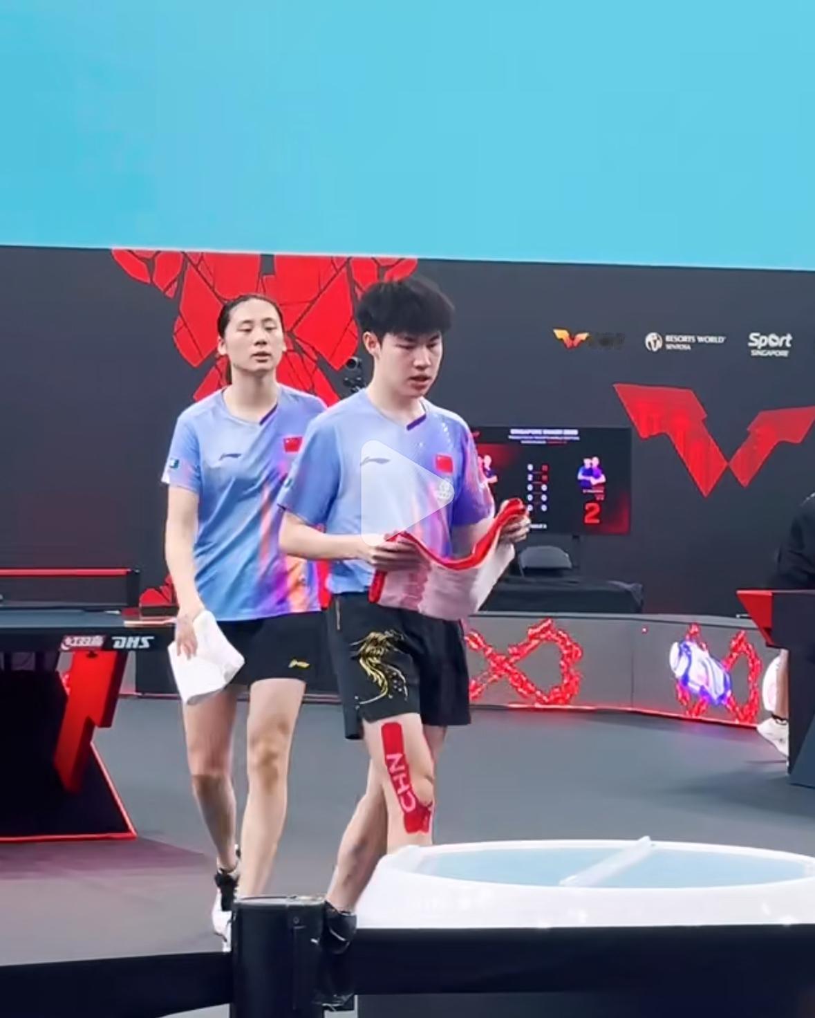 黄友政/陈熠的混双场外是于子洋——兼三项不容易 黄友政腿贴肌贴啦! 新加坡大满贯身兼三项的就是 陈熠和黄友政, 截止到2月24日, 黄友政和陈熠的单打,双打, 混双都还在, 兼三项不容易, 黄友政腿上的肌贴可能 是提前预防吧! 前辈的哥姐们都是这么过来的, 要想成为绝对主力, 就要扛住! 兼三其实就是考验体能和体力, 一般人受不了, 不吭声,不诉苦, 不代表不苦啊! 于子洋教练与黄友政都在魏桥俱乐部,年底还一起碰杯的队友, 这就给黄友政做场外, 当教练了,真好!