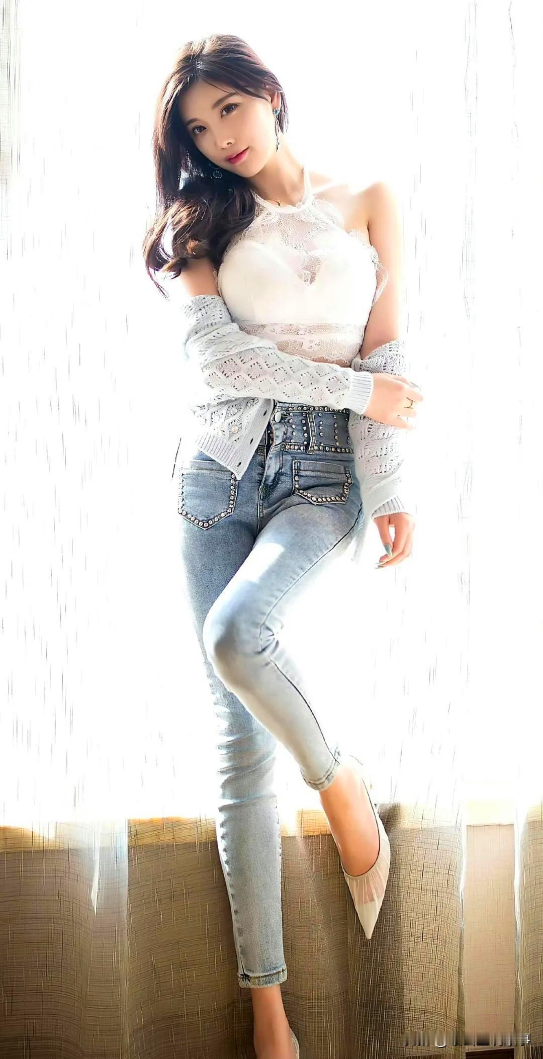 杨晨晨,瞧这绝美搭配,杨晨晨身着白色蕾丝,搭配经典牛仔裤,清新甜美又不失时尚感,