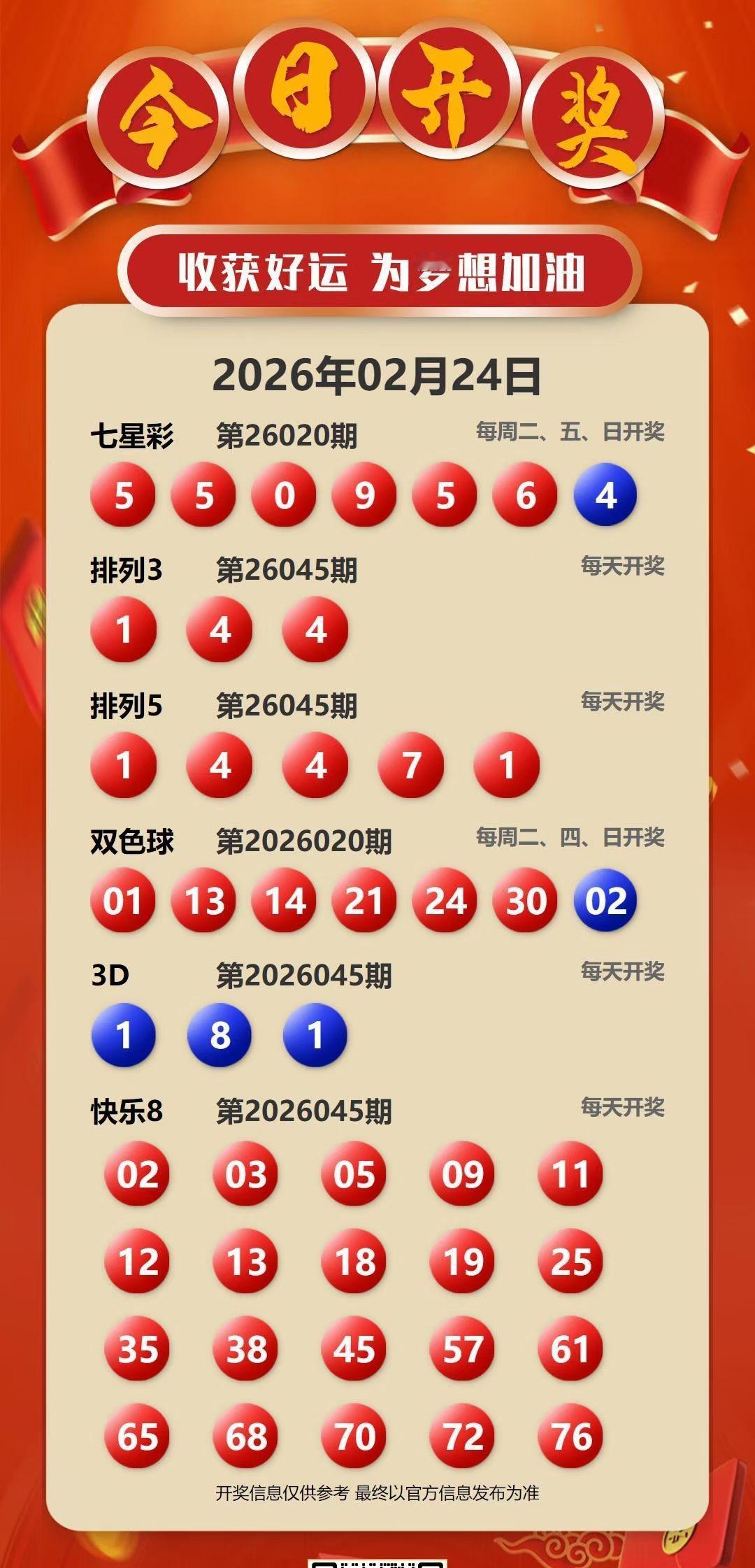 2月24号星期二,双色球开奖号码揭晓:01、13、14、21、24、30—02。本期双色球开奖号码前区红球开出了一枚连续三期开出的重号30号,开出了一组连号13、14号,开出了两组十进制同尾号01、21和14、24号。后区蓝球开出了间隔十几期的温号02号。 本期双色球开奖号码前区红球大中小区号码都有分布比较均匀,一等奖仅开出两注,单注奖金1000万元。一等奖中奖分布情况:河南甘肃各中得一注。