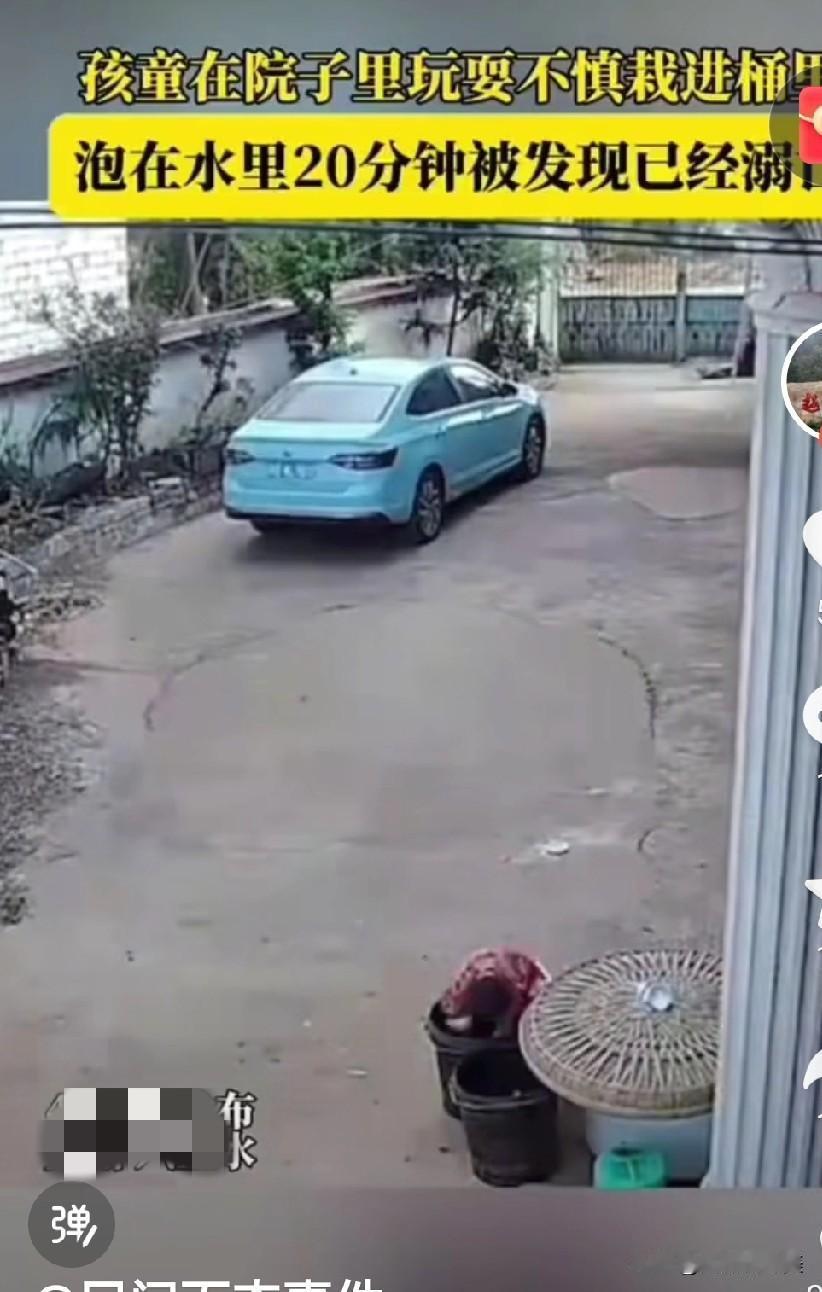 太可怕了,一个普普通通的家庭用品就变成了杀人凶手,家中有不懂事的小孩一定要提高警惕,千万不能让孩子离开你的视线,对于几岁的孩子来说,随随便便的物件都充满凶险!尤其在农村地区! 近日网传一段家庭监控视频震惊网友,父母出门打工,留下几岁的娃娃在家由奶奶伺候,小娃娃一个人在院子里的水桶边玩耍时不小心一头栽进桶里,只剩下两条小腿在外面扑腾挣扎,可是年迈的奶奶眼神不太好,来回走了两趟也没发现异常,小孩子就这样被活活溺死!一个完好的家庭就这样变得支离破碎,这个老人可能余生就在自责和愧疚中度过! 所以在外打拼的年轻夫妻们,一定不要把不懂事的孩子和孤寡老人单独留在家里,一方面小孩不懂事,家里到处充满凶险!另一方面人老了脑子没那么好使了,不是耳聋就是眼花,一不留神就会可酿成悲剧! 前车之鉴,亡羊补牢,犹未晚也!男童遭致死案