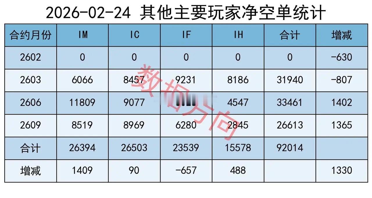 合计对IH、IF减空83手,合计对 IC、IM加空2976手,结构特征明显,偏向大盘股。
