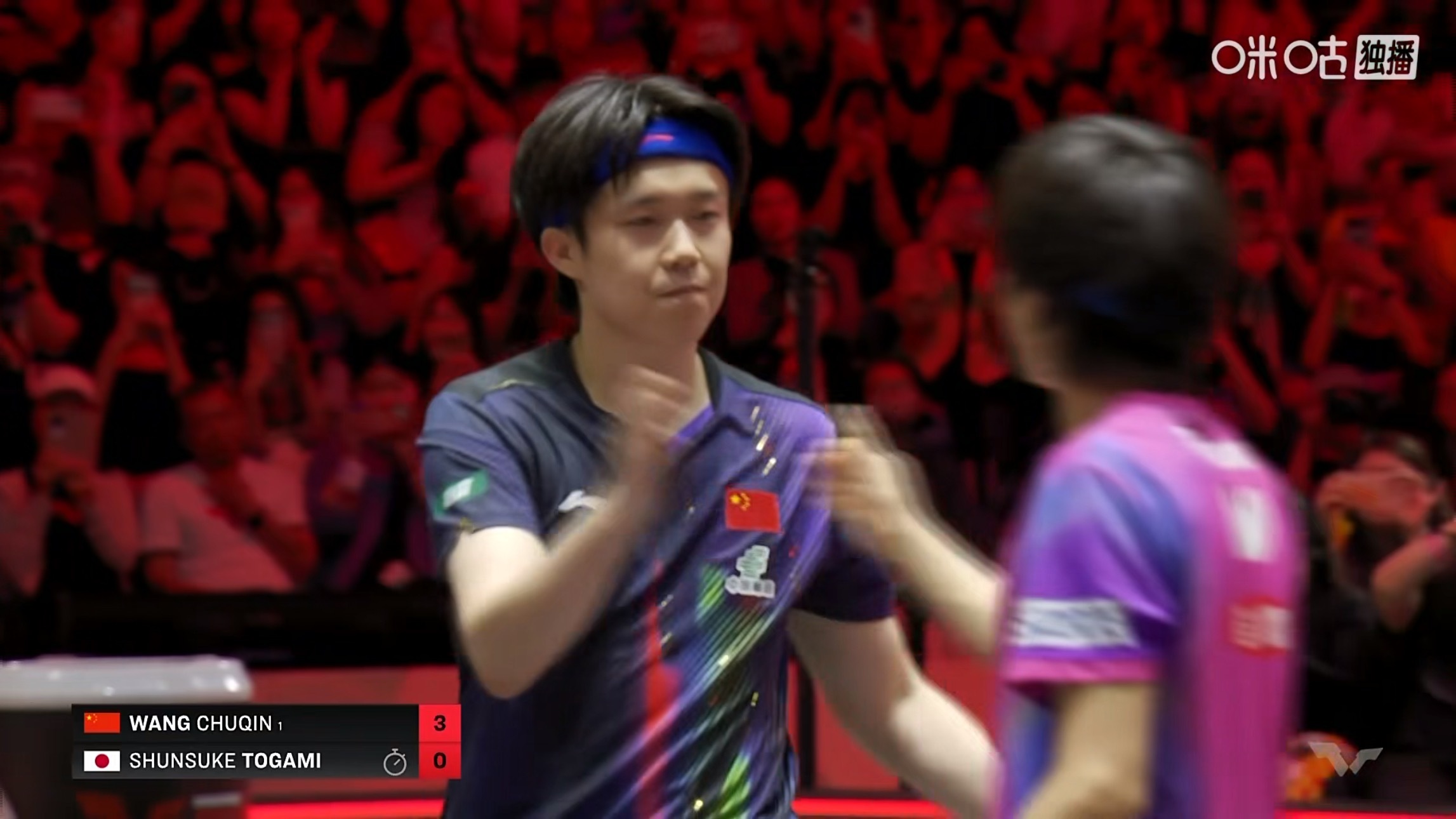 王楚钦3比0户上隼辅(11-9,11-8,11-5)晋级WTT新加坡大满贯202