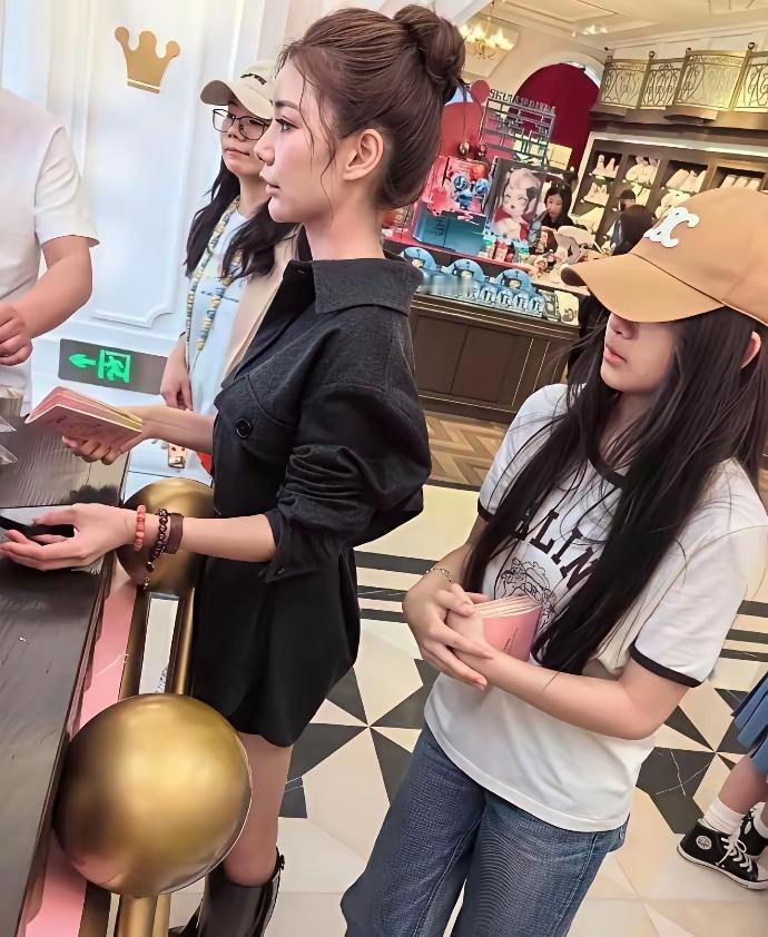 何超琼抱着何超盈女儿,两人穿一样的衣服,何超盈染黄发变美了