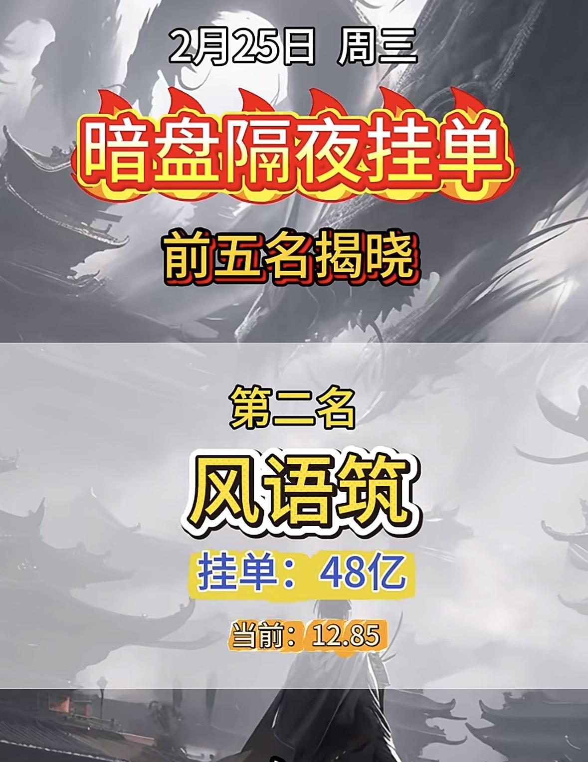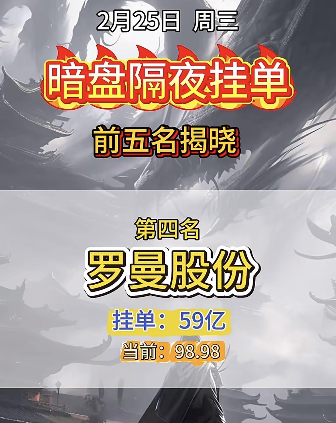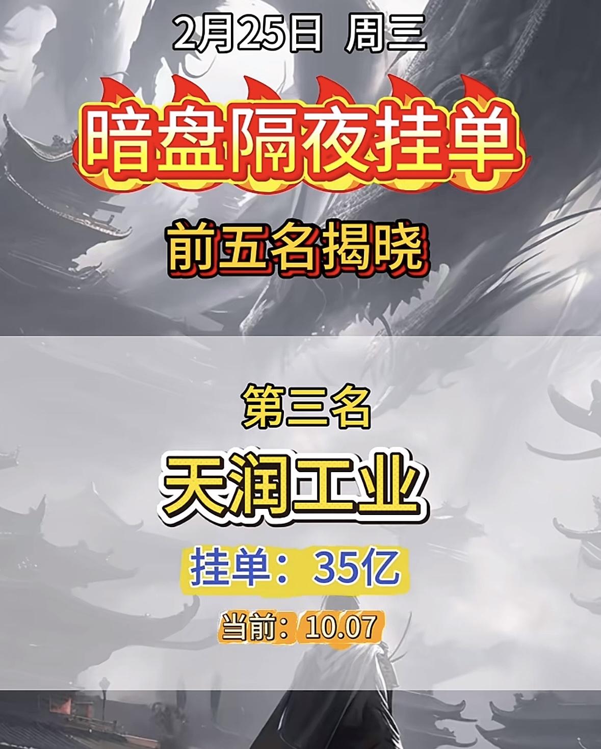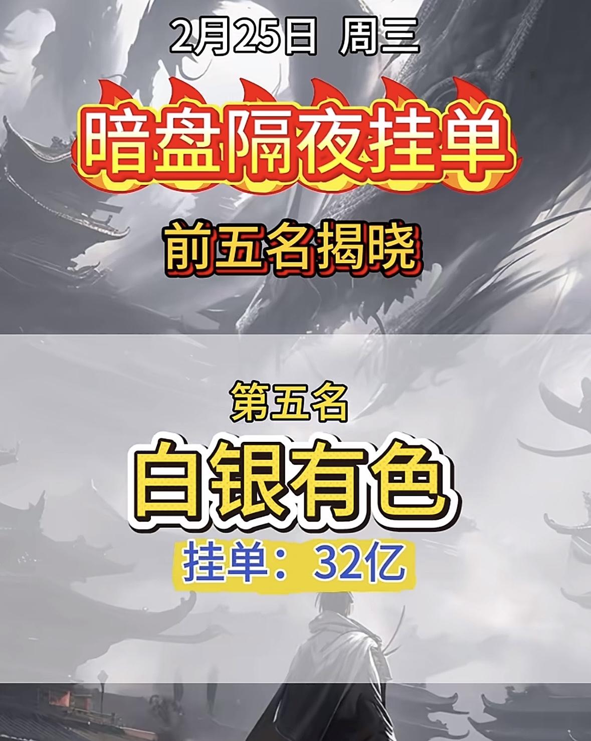 2月25日暗盘,第五名挂单32亿。 汉缆股份暗盘挂单霸榜,巨额资金抢筹显强势。
