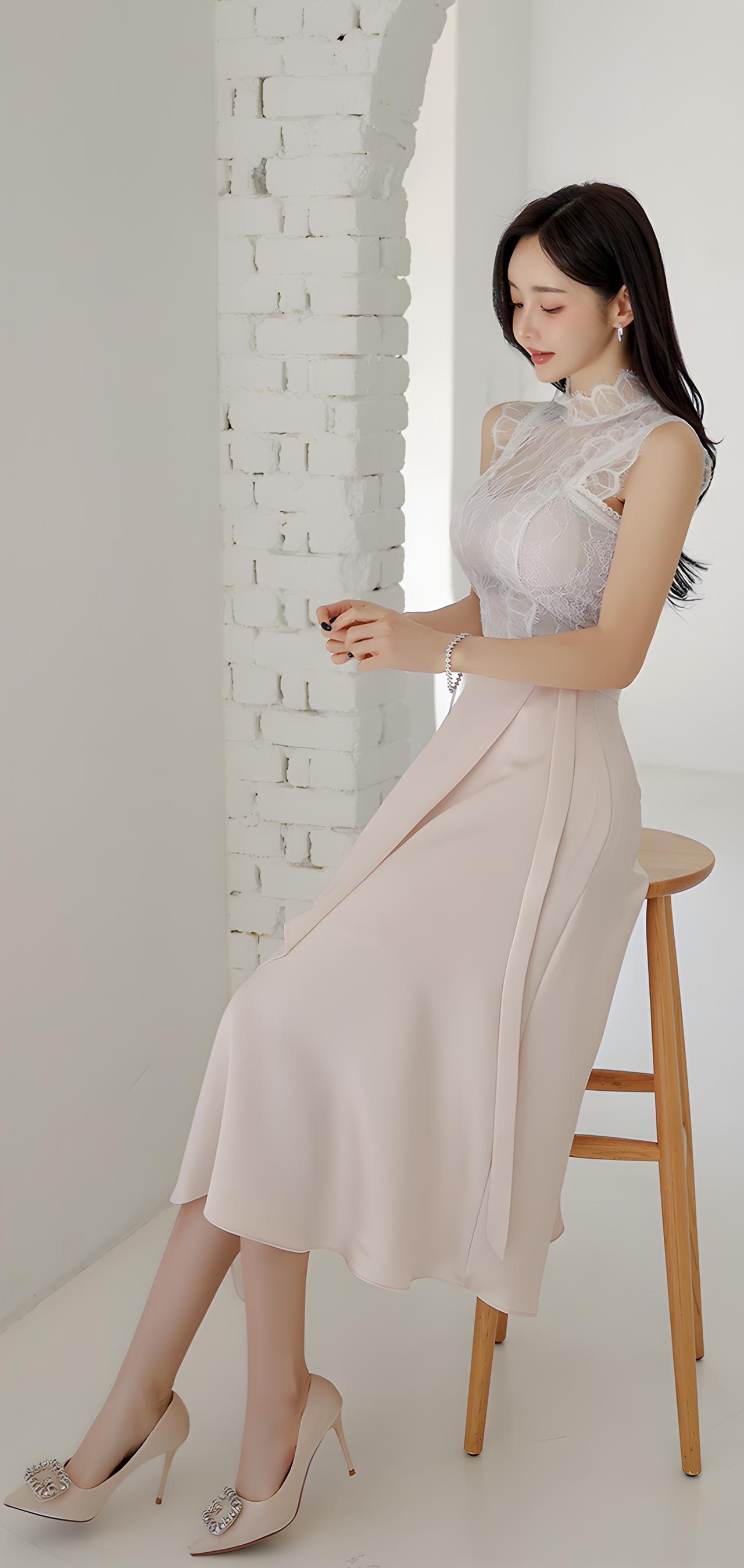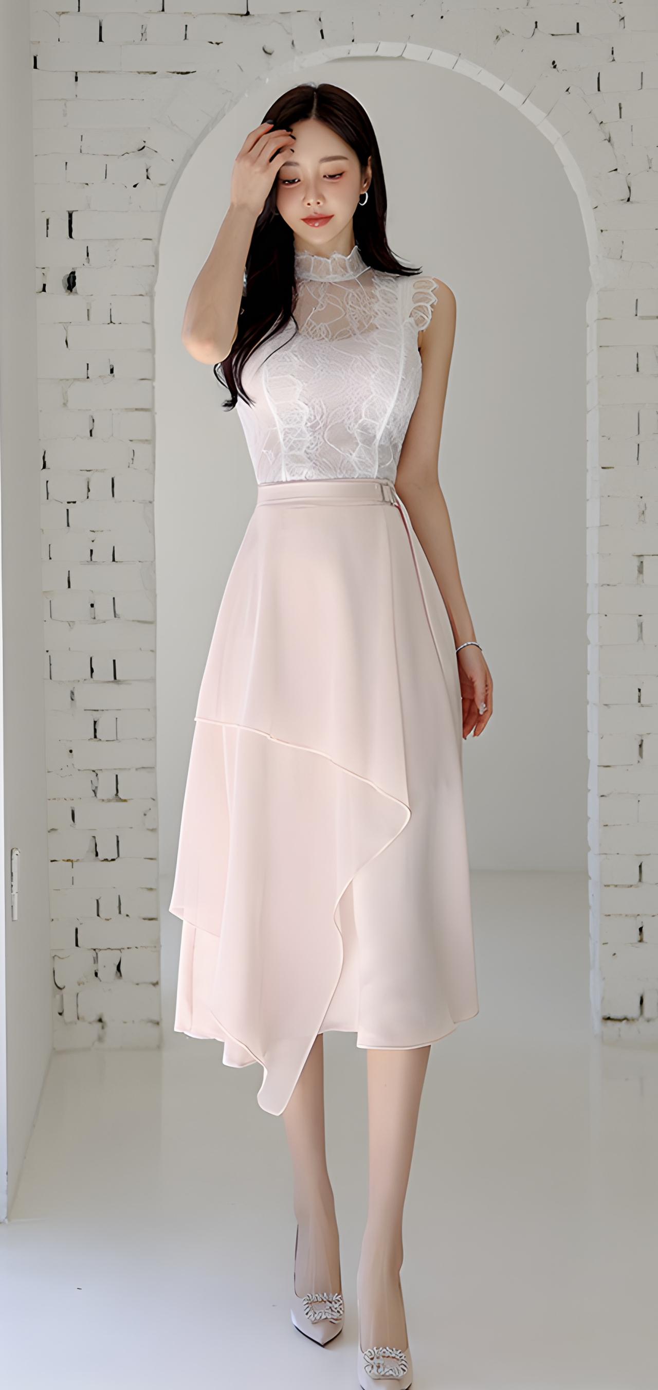 优雅气质穿搭,白色上衣+浅蓝色短裙,搭配高跟鞋,尽显时尚魅力!