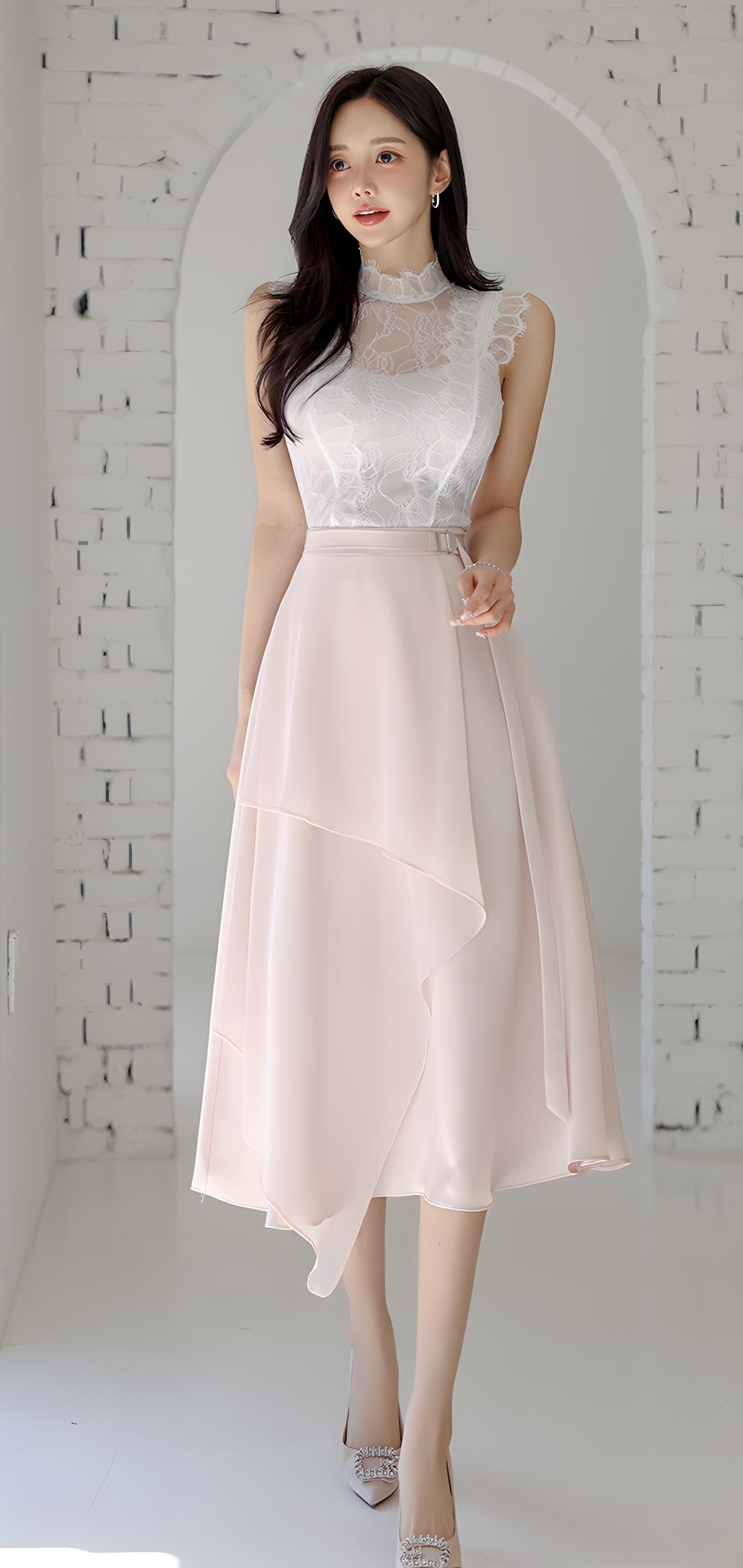 温柔甜美的夏日穿搭,白色蕾丝上衣搭配条纹短裙,清新又减龄!🌞👗👗