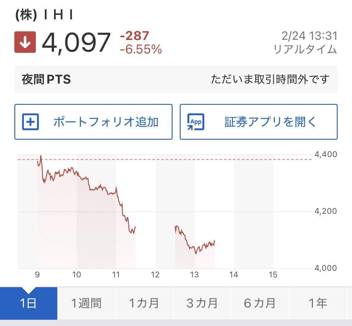 “株式会社IHI”昨天(2月24日)发的一个字推文“あ”(啊)引发日本舆论反响。 有日本网民猜测这是因为IHI股价一早暴跌(图二),也有日本网民猜测这是中方宣布制裁(图三),所以导致"啊"这句意味深长的评论。 [机智]评几句:IHI一个“あ”字道尽日本企业的惊慌与无奈,股价暴跌、中方反制落地,正是右翼政客玩火的直接代价。如果高市早苗继续冥顽不灵,执意扩军备战、在涉华问题上挑衅突破,只会让更多日本企业跟着遭殃,市场恐慌只会愈演愈烈。日本经济承受不起持续对抗,政治操弄换不来发展!