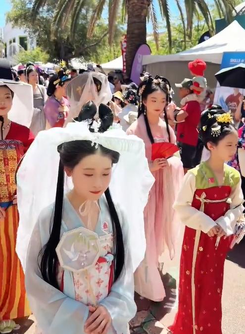 澳大利亚举办的汉服文化活动。 这次在澳洲的汉服文化活动,参与的女子并不多,大的有四五十岁,小的只有十来岁。但这些穿着汉服的女子,其实都比较好看。因为是在澳大利亚举行的活动,里面肯定不只是中国人,还有澳洲华人,甚至可能还有东亚各国的女孩,这个很难从面目上分清。因为一旦化了妆之后,根本就分辨不出种族,只能说是黄种人。 但是这些穿着汉服的女子,服装设计的都比较精美,其实是各个朝代的汉服风格都有,甚至还有朝鲜族样式的汉服,反正就是五花八门,但都可以总结归类于汉服之列。 因为从秦汉时期至今,2000多年的汉服演化风格,都是完全不同的,都可以归结为汉服之列。主打的就是一个雍容华贵和飘逸潇洒,穿上之后确实显得比较漂亮。 但实际上,汉服如此华贵,只是在重大节日或者重要场合穿着。平常的时候,古代汉家女子还是穿的比较精炼和朴素,不可能穿得这样华美的衣服去下地劳作,这也不合适。 能够到澳大利亚看到这么多身穿汉服的女子,还是觉得挺让人感慨的,但是这也只是一种文化,一种符号,平常肯定不能那么穿。其实在欧洲和北美,都有这样的活动,只是宣传的不多而已。汉服被推广开来,也只是时间问题。