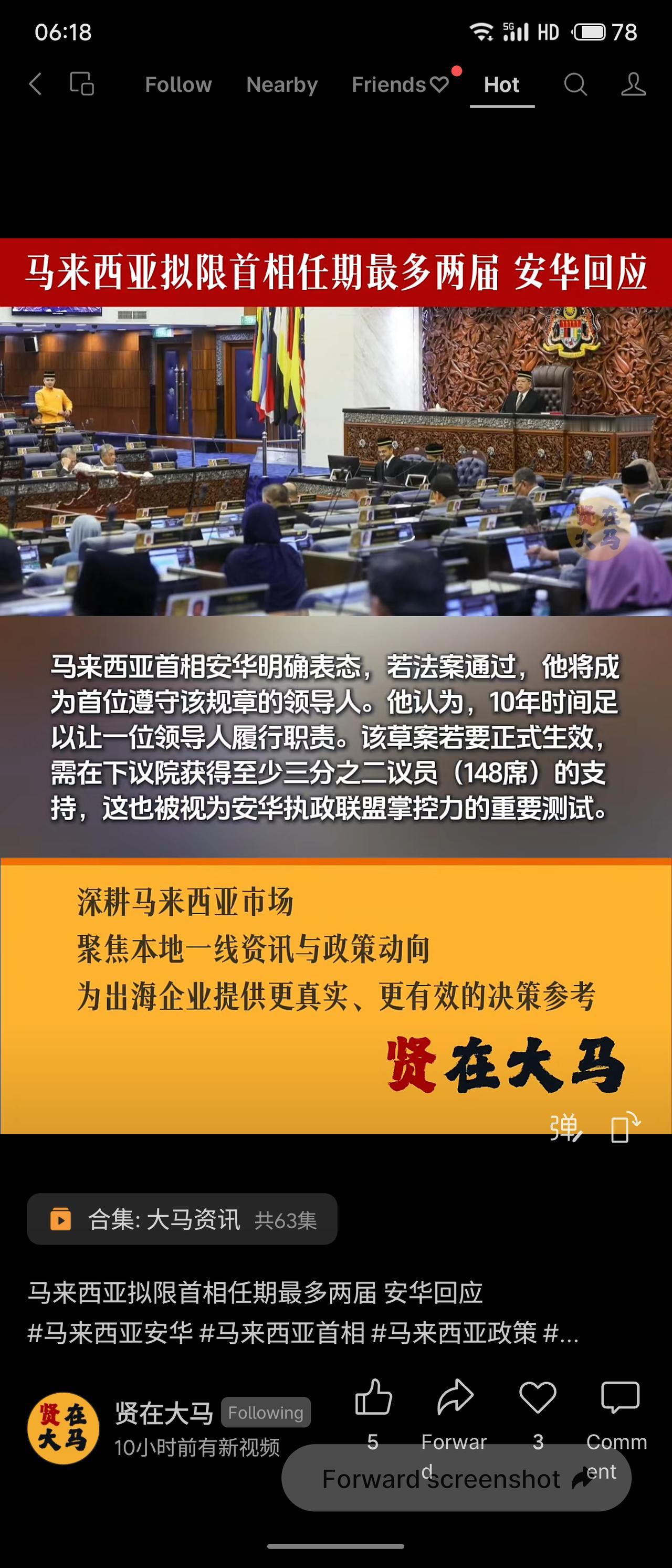 马来西亚政府2月23日提交修宪草案,拟限制首相任期不超过两届共10年。首相安华表态支持,若通过将成为首位遵守者。该草案需下议院三分之二议员支持,被视为对安华执政联盟掌控力的重要测试。此举体现政治改革诚意,但能否通过考验执政联盟凝聚力。