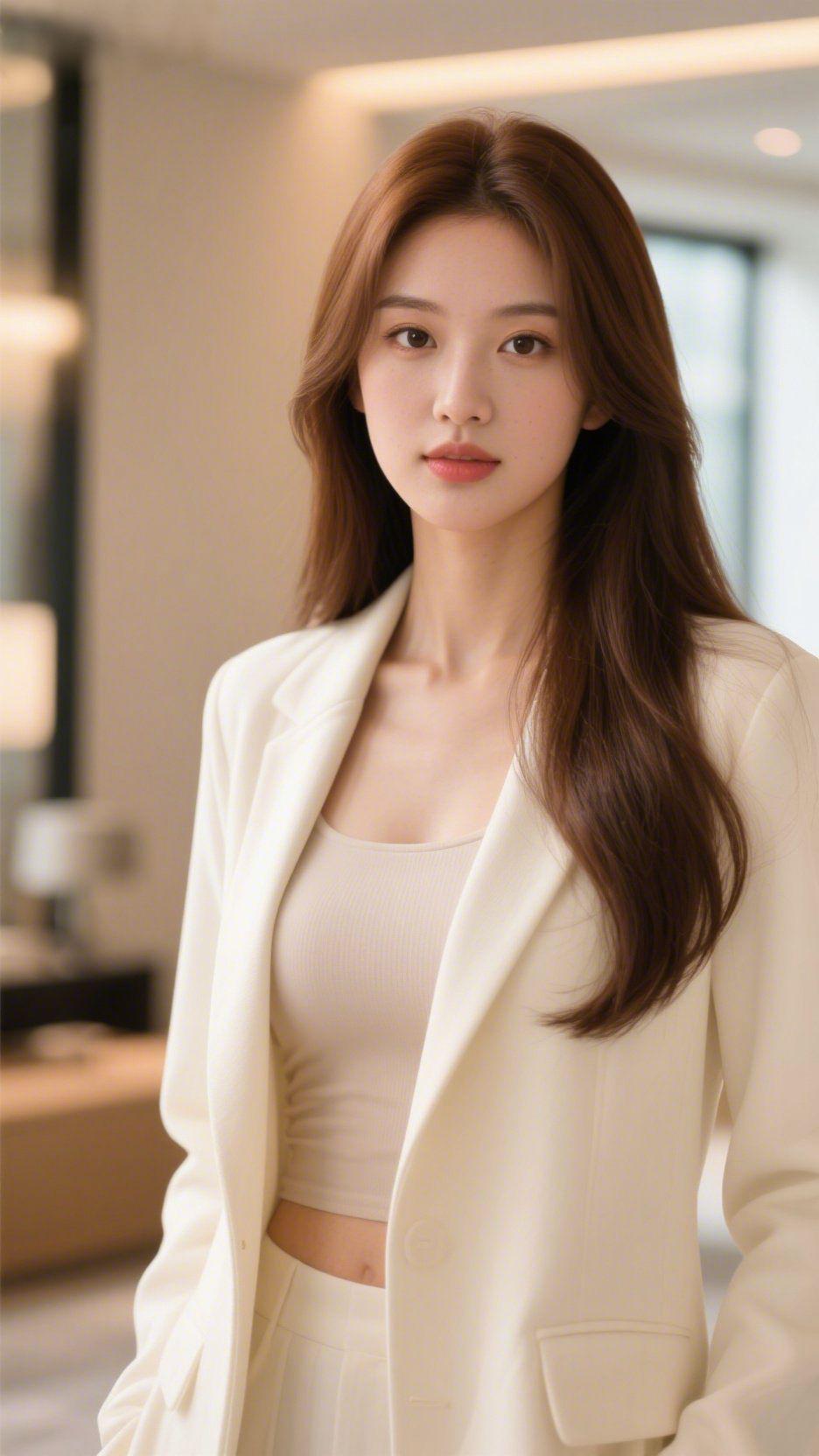 温柔亦有锋芒 暖调柔光漫过简约的室内空间,一身干净利落的米白西装,衬得眉眼间尽是不疾不徐的从容与笃定。 真正的强大,从来不是咄咄逼人的张扬,而是历经世事浮沉后,依然守住的清醒与温柔。不迎合世俗的刻板期待,不被旁人的闲言碎语裹挟,把分寸感留给待人接物,把坚定刻进自己的人生步调。 不必追赶谁的脚步,不必强求所有人都懂。你只管守好自己的节奏,温柔待人,坚定做事,于时光里慢慢沉淀,活成独属于自己的耀眼光芒。