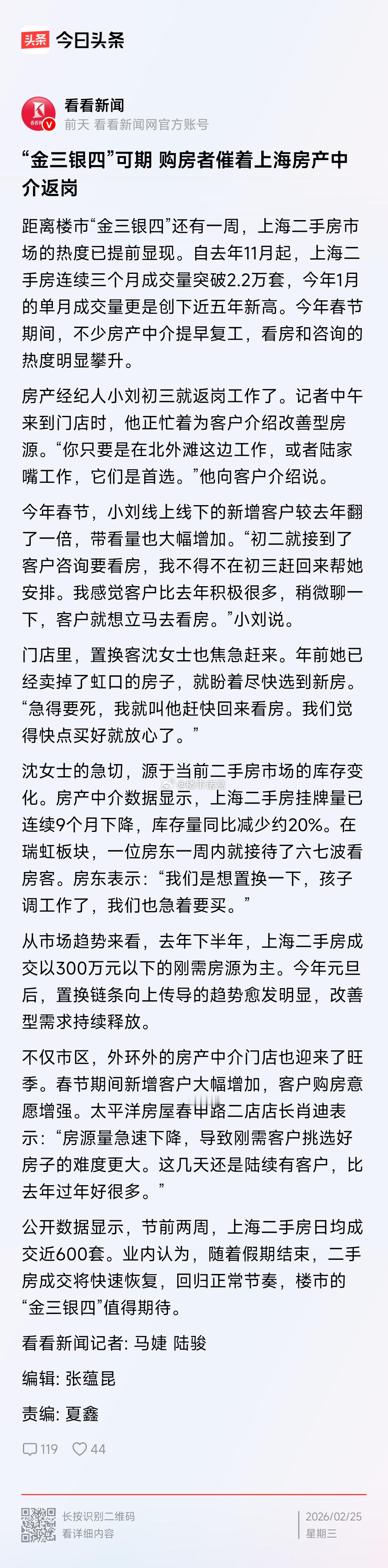 据新闻报道,上海楼市小阳春已经启动了……楼市第一线
