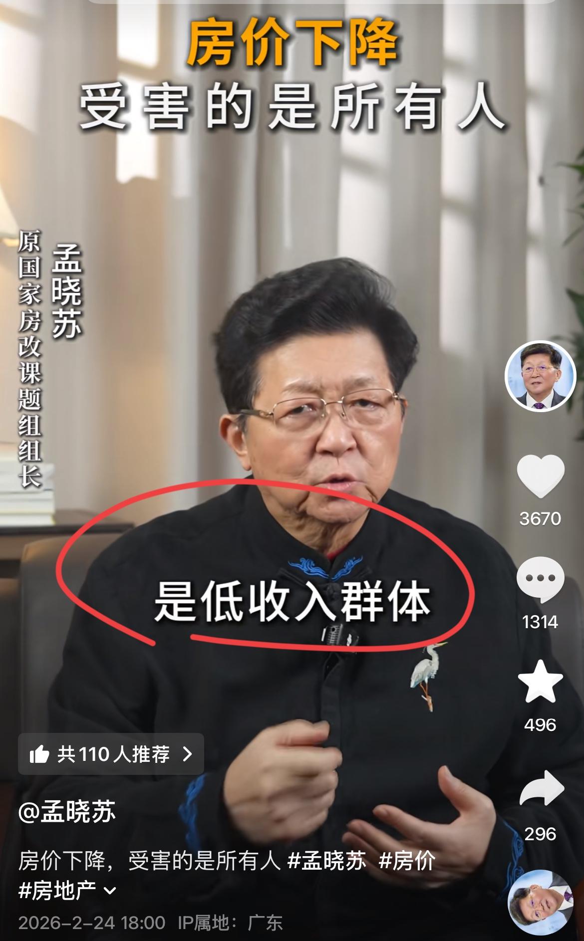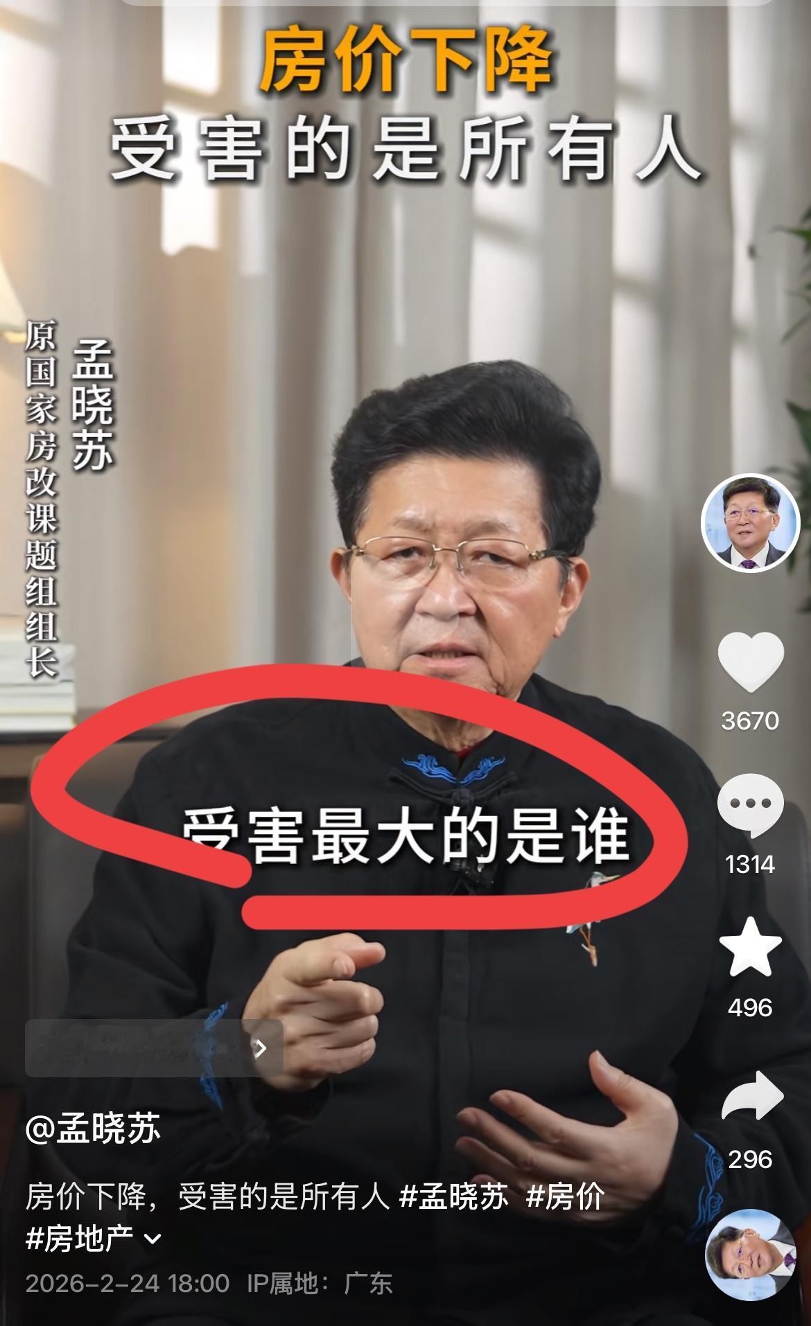 快来围观,房地产之父孟总又出新观点了!! 房子价格不能再降了,房价再下降,受害的是所有人,尤其是底层的穷人!! 孟总被誉为中国房地产之父,他是前中房集团的董事长,国家房改组组长,孟总研究房地产几十年,对于推动大陆和香港房地产快速和迅猛发展,做作出了巨大贡献!! 孟总认为,房地产是经济第一支柱,现在房价已经大跌了40%以上,房地产规模据大概是450万亿,已经跌了180万亿,我们一年的GDP才130万亿,相当于跌去了一年的GDP,还倒欠50万亿,这么多财富蒸发了,老百姓哪里还有信心消费投资,买房! 所以他认为,不能再跌了,一定要涨回去,大涨价,老百姓一定回来,进场接盘,信心一回来,消费就起来,经济自然就恢复了! 你认同孟总的这个房价逻辑闭环吗,有何高见呢?