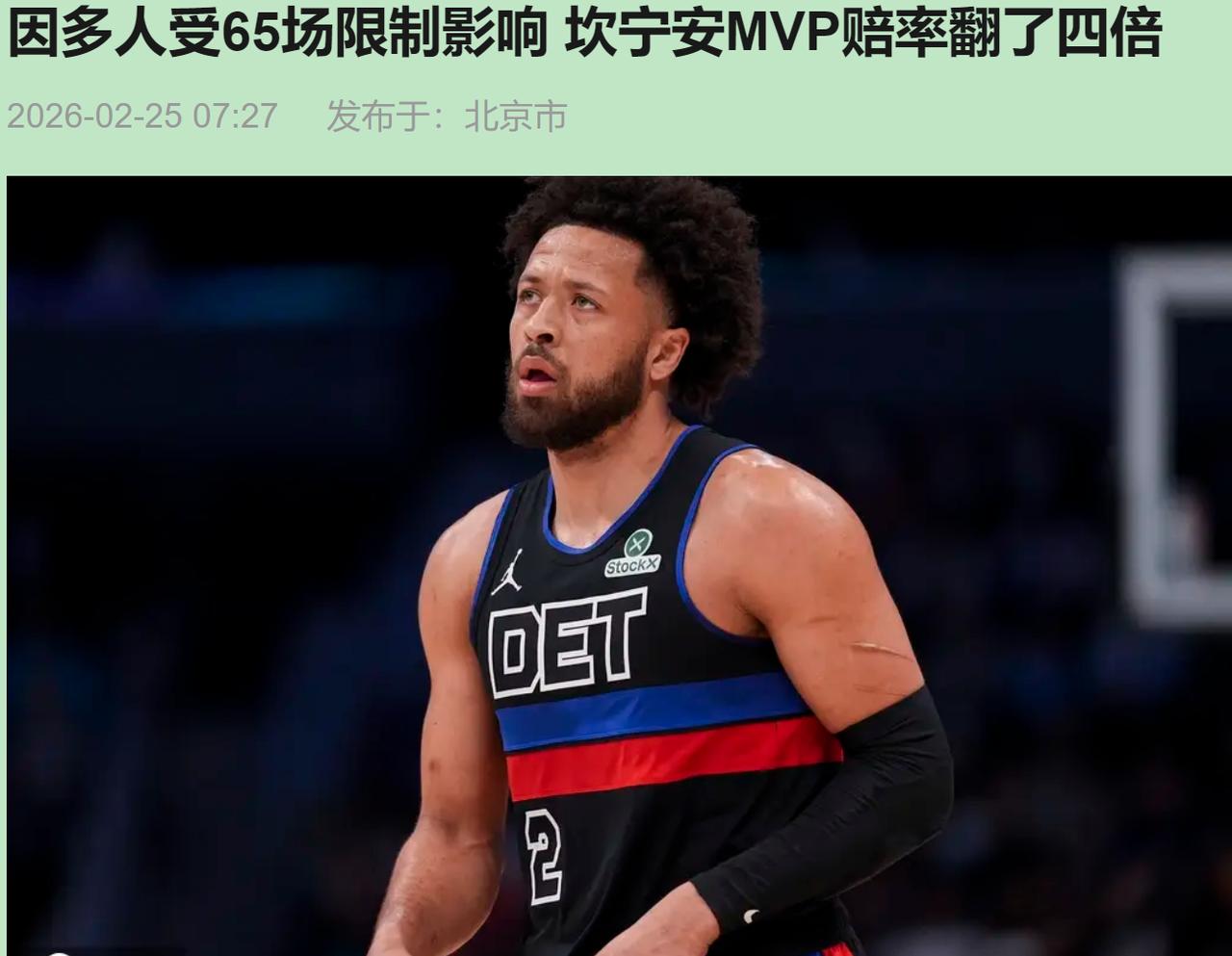 凌晨起来刷手机,看到坎宁安MVP赔率翻了四倍,我差点把手机砸脸上。东部倒数的球队核心,居然跟SGA、约老师平起平坐?这哪是评MVP,这是评"全勤安慰奖"啊。 你想想,这就像你们公司有个同事,天天打卡满勤,但项目做砸了一大半,KPI全组垫底。另一个同事带着小组业绩冲前三,偶尔请个假。年底评优,老板说要颁给那个全勤的——就因为公司新规"必须出勤65天"。你什么心情?憋屈对吧?这就是现在MVP评选的魔幻现实。 坎宁安场均25+4+8,数据看着唬人,但活塞胜率不到四成,连附加赛门槛都摸不着。SGA带着雷霆西部前三,关键时刻硬解;约老师高阶霸榜,一个人当三个人兜底。这俩人现在憋着不敢轮休,生怕错过65场门槛。而坎宁安还有11场"免死金牌",躺在乐透区就被捧上神坛。 13%的概率,赌狗看了流泪,真球迷看了心碎。说白了,这就是博彩公司在旱季人工造浪——反正活塞进不了季后赛,不如炒个话题割韭菜。 我们生气的不是坎宁安,小伙子打球拼命,值得尊重。我们烦的是这套把"耐操"凌驾于"带队能力"之上的游戏规则。MVP本该是扛着球队走最远的人,不是最能打卡的人。等季后赛开打,看着真正的超巨在高端局厮杀,这13%的泡沫自然会破。那时候你就会懂,河流之所以是河流,从来不是因为它的水量刚好够到及格线。因多人受65场限制影响 坎宁安MVP赔率翻了四倍
