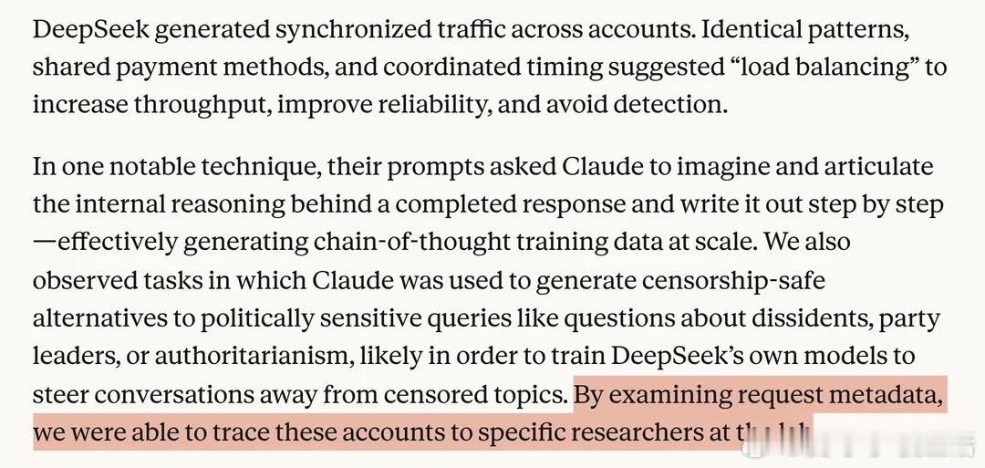 Anthropic最近发布了一篇博客,主题是他们如何检测并反制所谓的“蒸馏攻击”。内容大意是:他们发现一批账户行为高度同步,支付方式相似,请求节奏整齐,判断是有人在规模化地调用Claude来生成chain-of-thought训练数据,幕后指向中国实验室的研究人员。