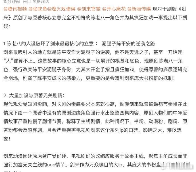 腾讯视频剑来剧组码到吴磊,天大的福气,新丽传媒就别魔改剧情了 ,不然后面扑街自己买单啊