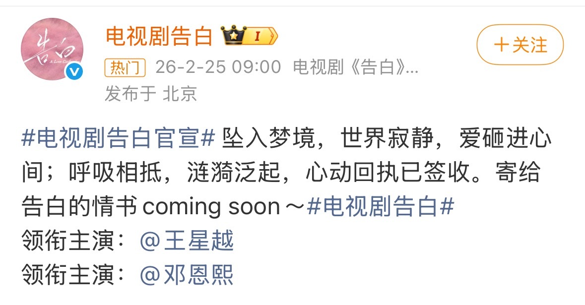 🍉陈飞宇进组《偏偏宠爱》 饰演江忍偏偏宠爱 陈飞宇