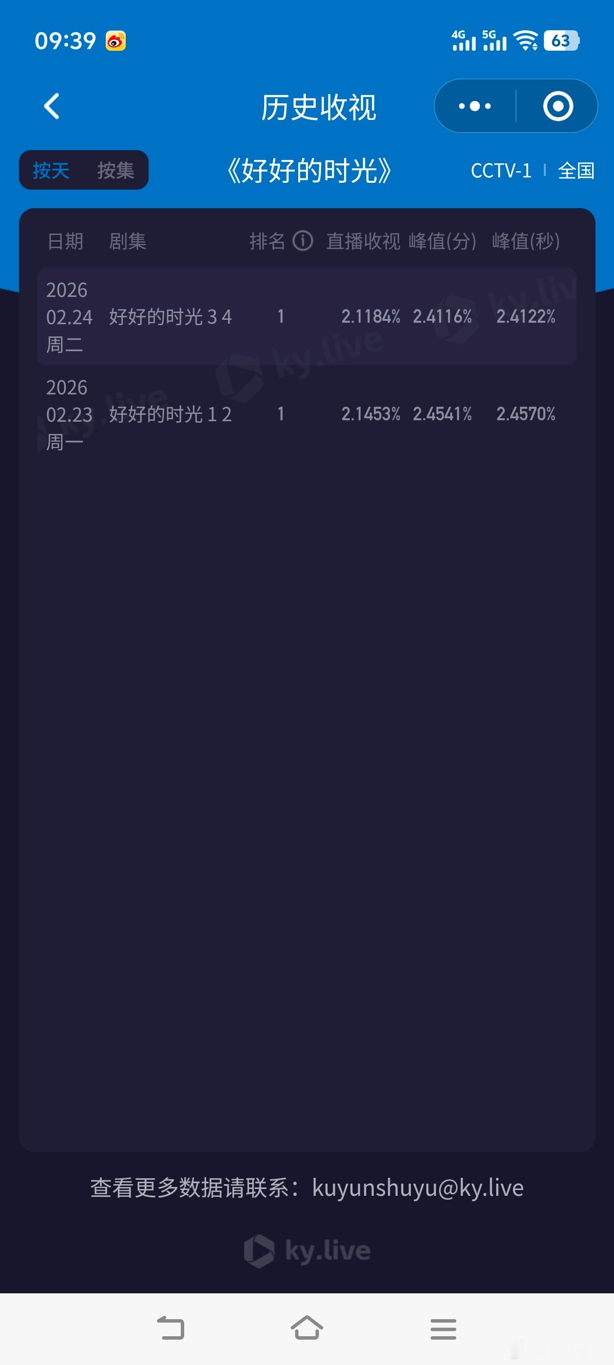 好好的时光央视开播收视第一《好好的时光》开播第二天,收视稳住了。第二集峰值即将超过第一集峰值,虽然双集平均小降,但是走势很好,后续大涨潜力很大!