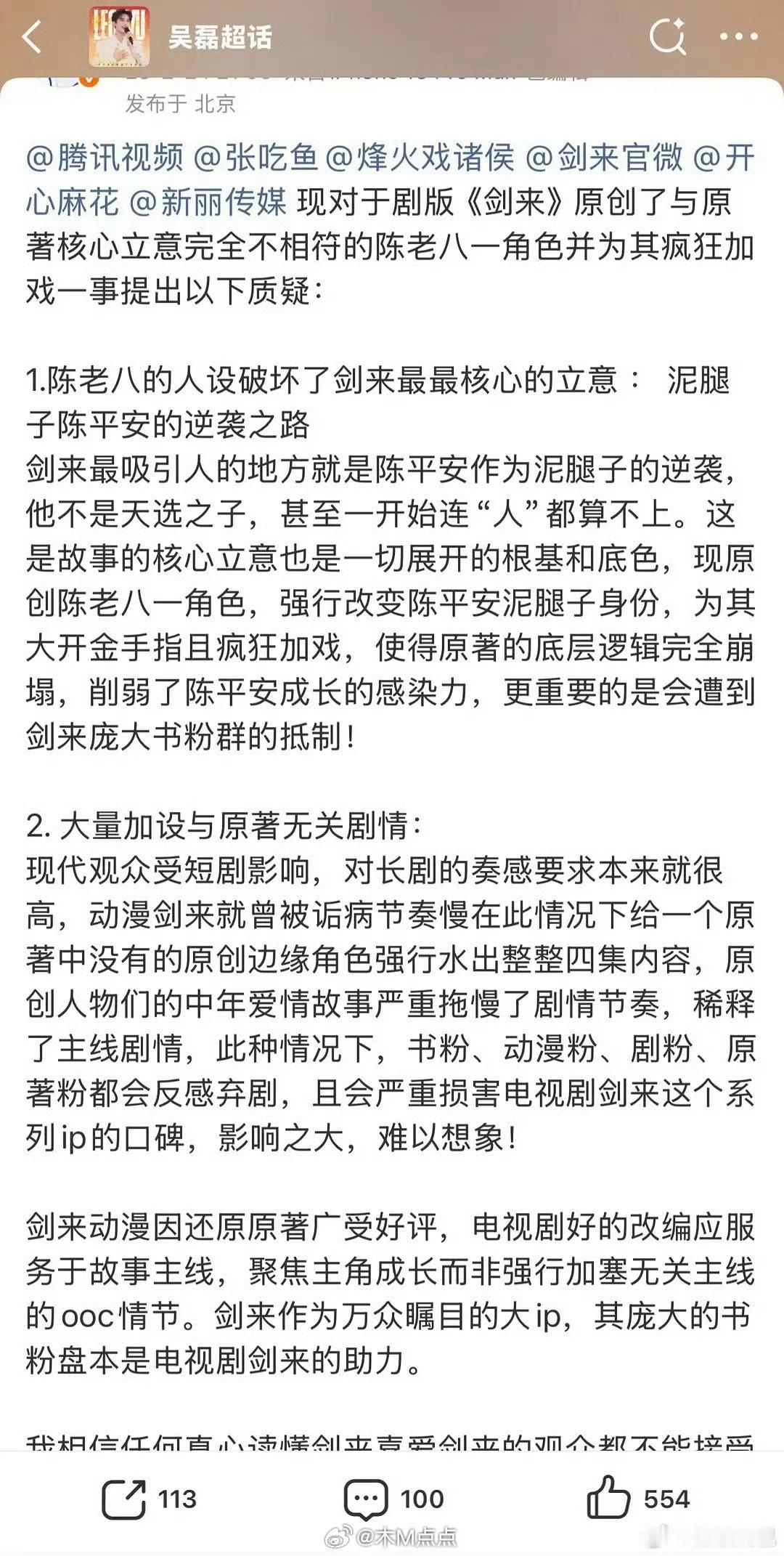 不让江山作者取关剧组,杨洋的不让江山妆造papi酱的权威无可替代,好奇男二什么背景😂其实感觉他的资源挺好,是emo的电视剧男主哎(印象中他性格不错,演技也还行)但背景真的好到魔改剧本,有点出乎我意料了。时至今日,这件事其实已经不是杨洋一个人的现象,如果连杨洋这样长红扛剧咖位大的都板不掉zb🕳️不是针对谁,我是说娱乐圈在座的各位只会比他更难。这场输了zb只会变本加厉 无所畏惧,懂得都懂~不让江山剧组 杨洋 吴磊粉丝维权,质疑剧版《剑来》原创了与原著核心立意完全不相符的陈老八一角色并为其疯狂加戏……剑来 魔改你安心去叭,搞个原创角色加戏,完🥚辣~ 看到吴磊剑来也开始维权,剑来总共24集,陈平安他爹娘就几句话交代背景板人物,居然能加戏4集吴磊粉丝现在才说,已经很克制了 …剧组魔改感觉周洁琼是真的好惨,因为这个剧不能去 韩国ioi重组。然后这个剧又是阴阳剧本把男女主骗进来杀只能说周洁琼不是一般的惨 之前一个剧中途被换角 这个剧又这样...那个赵露思之前也遇到了这种阴阳剧本,那时候网上骂她骂的好厉害,热搜一直挂在上面让别人骂,但我想说,不论是哪位明星遇到这种事还是直接硬刚到底比较好,因为你态度不硬起来,以后别人可能就逮着你来做局 曝不让江山作者早就暗示了两套剧本,不让江山剧本repo