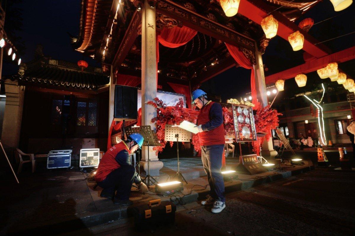 宁波供电人八小时坚守护慈城灯会璀璨 近日,宁波慈城新春灯会启幕,这是宁波首个千米古城墙灯会,现场热闹非凡。国网宁波供电公司江北分公司的工作人员全程坚守保电,采用“无人机空中巡检+人工特巡”的立体监测模式,对配电柜、线路等设备反复检测测温,还贴心提醒摊主规范用电。工作人员从傍晚五点半值守至子夜,8小时里精准操作保障用电稳定,直至游客离场、逐步降负荷后,保电任务才完成。他们错过自家团圆饭,最终在深夜的面馆吃上暖心夜宵,以坚守守护灯会的璀璨。