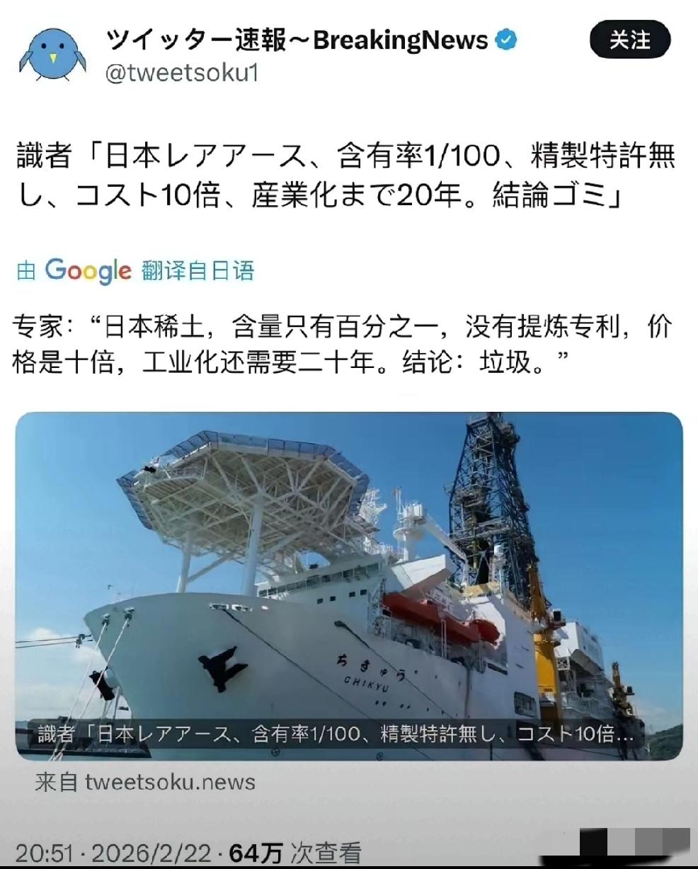 2月25日,日媒22日报道:“日本深海提取稀土,完全失败”;18日,央视新闻报道:国际货币基金组织向日本发出三重警告。 个人认为:当下,一定要坚持不停的削弱日本的国力。使得日本不能够再军事化,再武器化。 当下日本经济衰退的内因-内部结构出现问题是主要原因,但是外因得当— 在趁势当时情况下,对日本经济痛点,进行连环精准痛击,促进内因的爆发,造成伤害效果扩大化,连锁化。那么就使得日本没有能力,没有实力,没有资金去进行再军事化,再武装化。 经济垮了,政治也必然受到影响,外交就更加不要想了,因为日本一直靠着日元为工具进行外交。