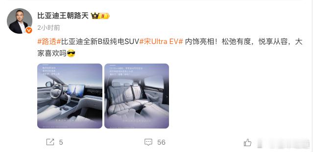 懂车之道讯 懂车之道快讯,2月25日,比亚迪旗下全新中型SUV宋Ultra EV内饰官图。新车将提供大床模式,满足更多用车场景。此前,曾网传该车预计售价在18万元左右。