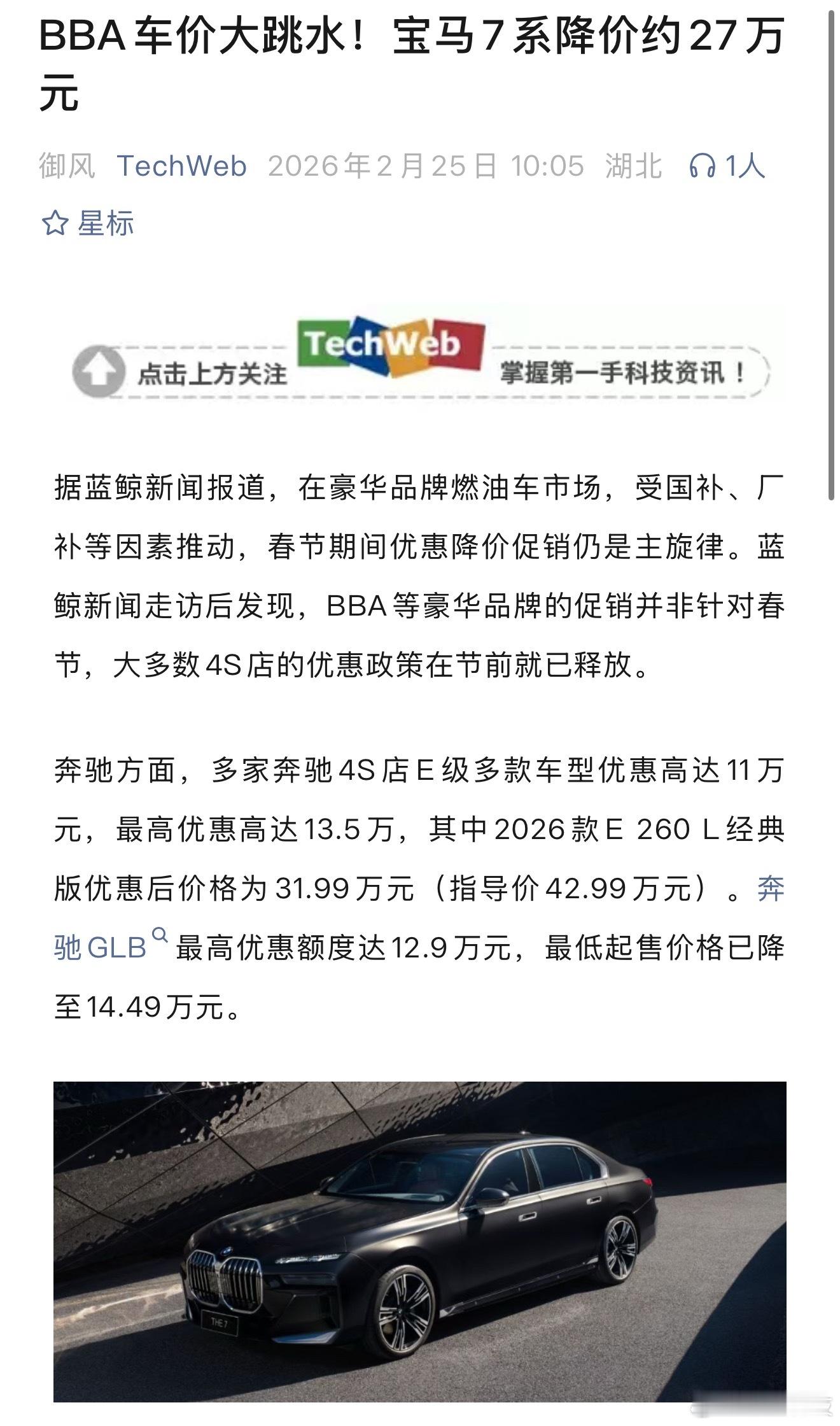 宝马7系降价约27万谁敢想现在五十多万买x7了,不过就怕豪华品牌不止降价,还减配太多…这要感谢国产错位降维打击 56E,感谢国产豪华车强硬干掉78S!