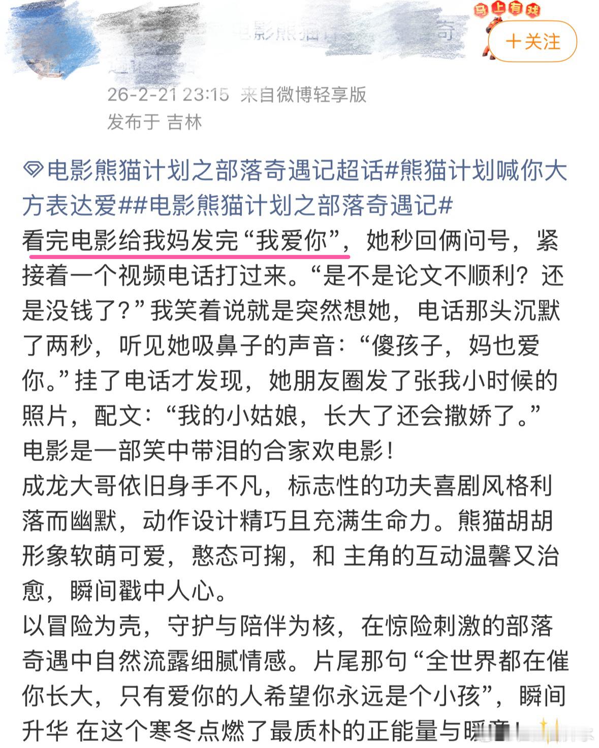 原来对家人说我爱你这么简单《熊猫计划之部落奇遇记》里的父子情很暖心,平凡又真实,看完让人也想好好对家人表达心意