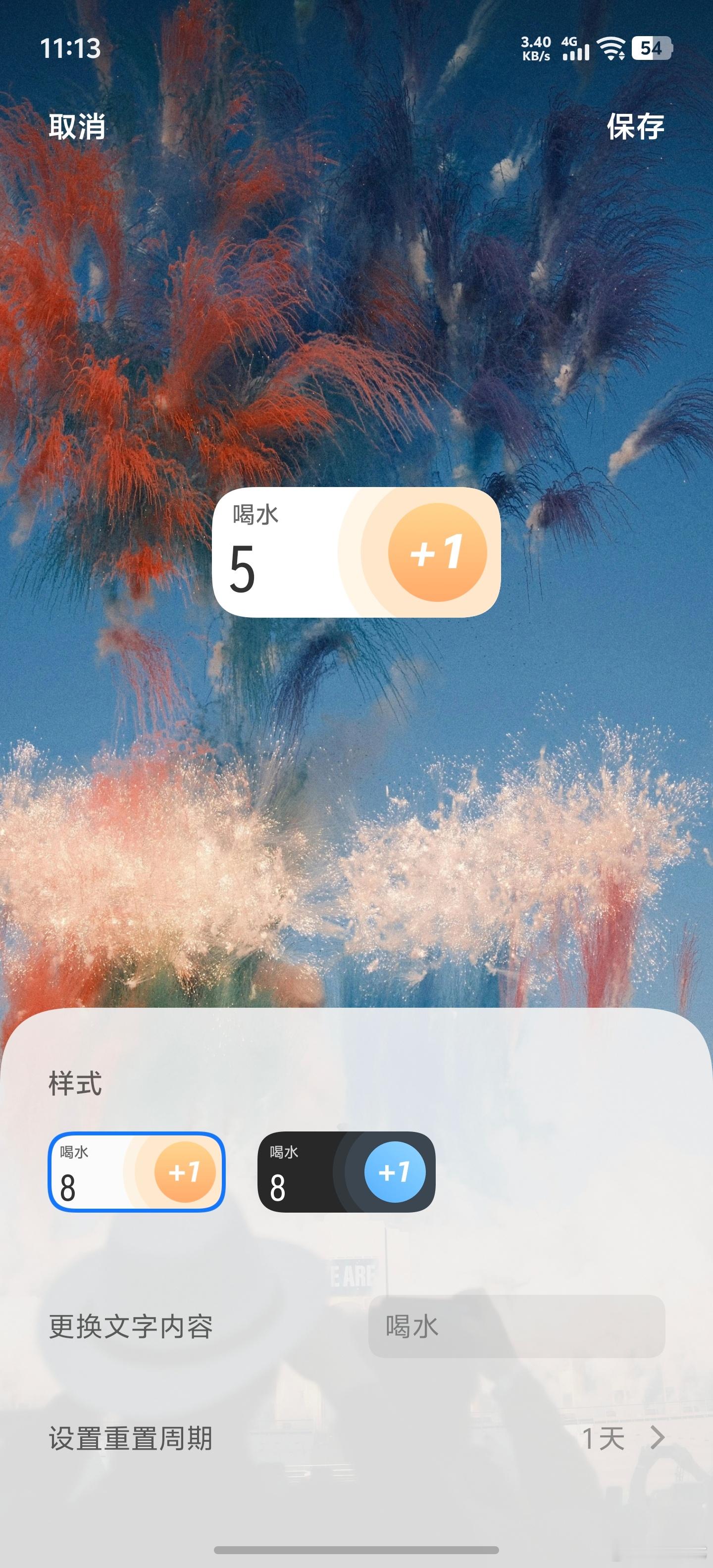 最近非常喜欢的一个功能:Origin OS里的打卡贴纸。可以自己输入打卡的内容,比如我是喝水/发微博,一天重置一次,点一下就能+1