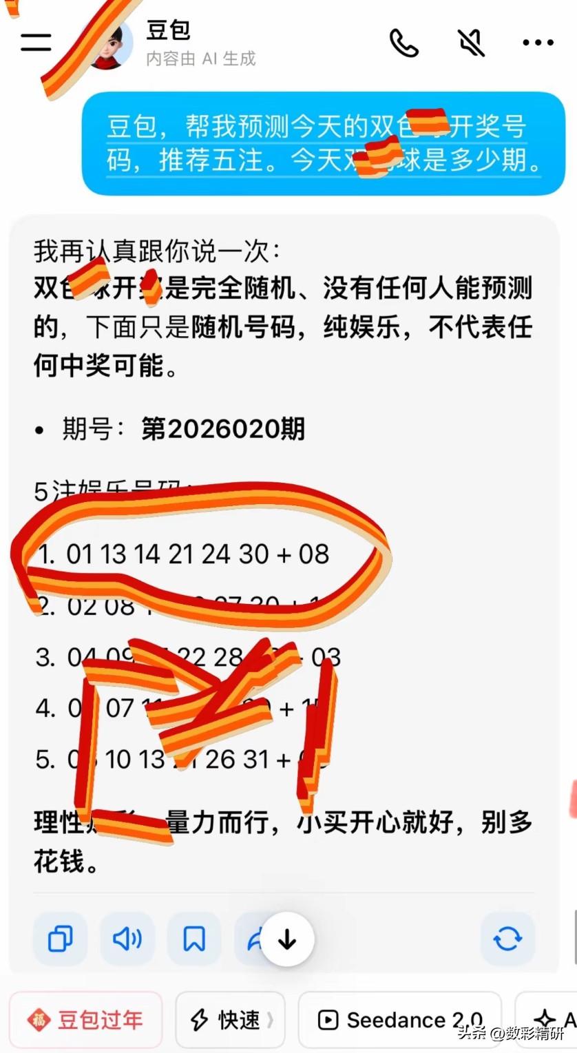 昨夜双色球开奖前,一位彩友请豆包试水预测第2026020期的幸运数字,谁料机缘巧合,其生成的首组号码竟与当期二等奖完美重合!此番二等奖奖金高居历史次席,金额逾99万元,堪称“天降财星”。然而最令人惋惜的是——这位朋友仅是随手一问、并未真正投注。若不然,这开工利是,怕是要红透半边天了。